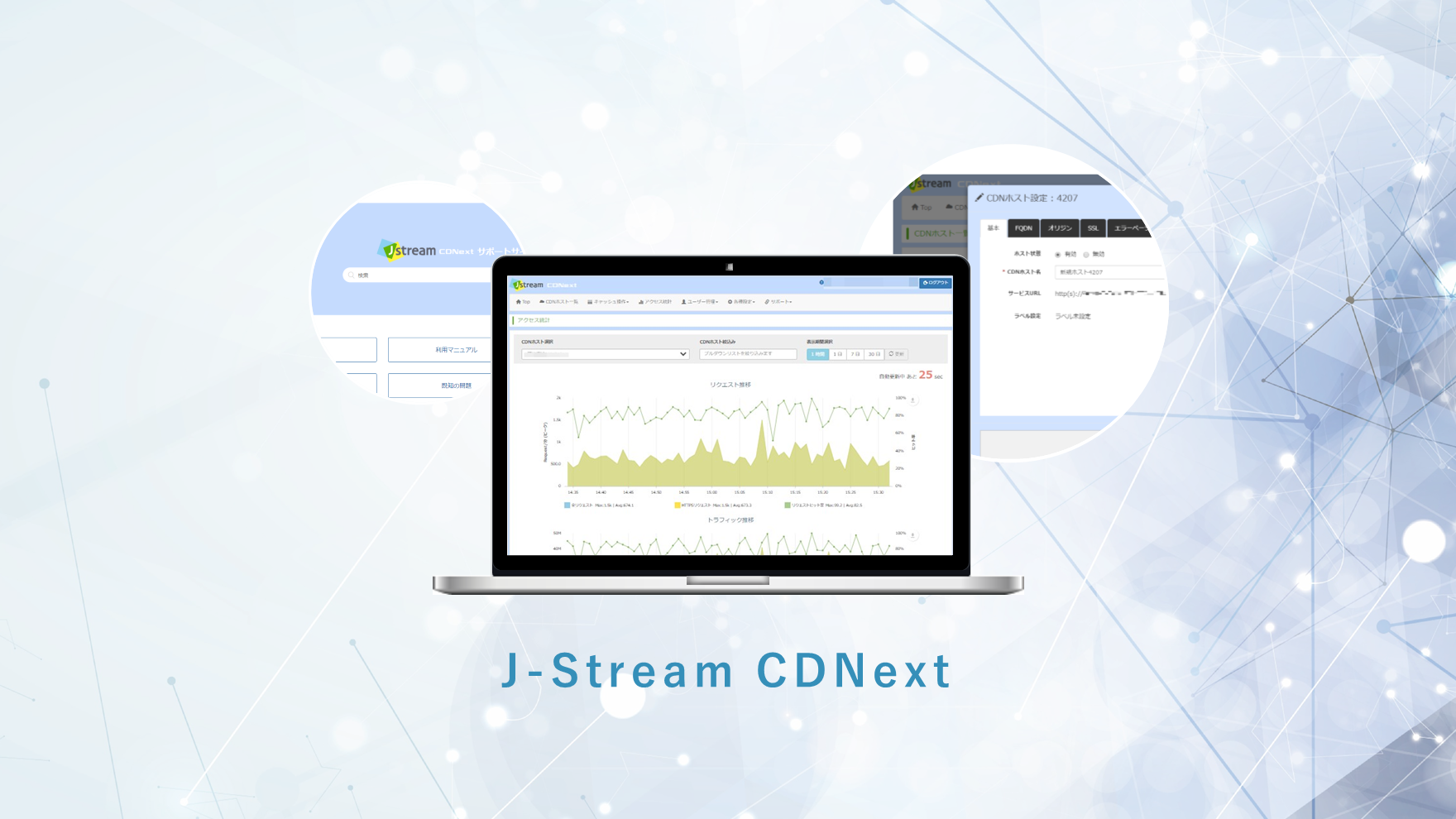 J-Stream CDNext(ジェイストリーム・シーディーネクスト)は、Web画面上からCDNを管理運用できるプラットフォームサービスです。