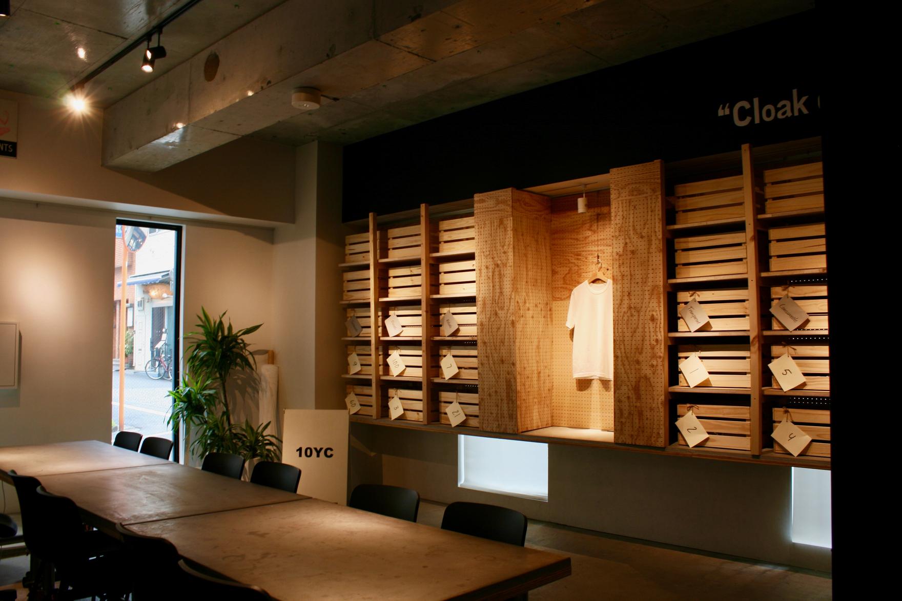 シンプルだがその中に多くのこだわりが詰まっているブ ランド10YCの海外向けのポップアップ企画において、そのブランドコンセプトや、ファウンダーのメッセージ、ブランドのヒストリーを、体験しながら知ることのでき るスペースをデザインした。「カオスマップを表現した い!」というご要望に応じて、表面上からは見えない要素を引き出しを引くというアクションを起こすことから、それぞれに込められたキーワードが浮かび上がり、最終的に1枚のTシャツへ繋がる仕掛けになっている。