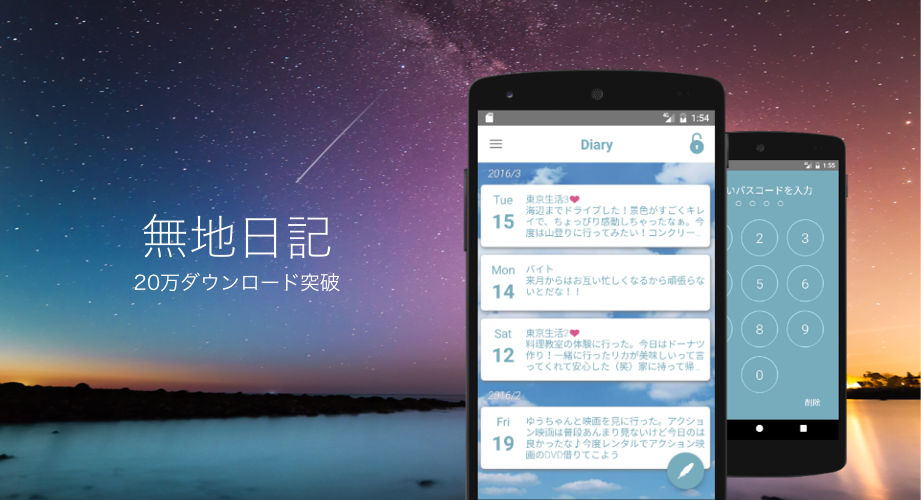 シンプルな日記帳アプリ。累計100万ダウンロード突破。