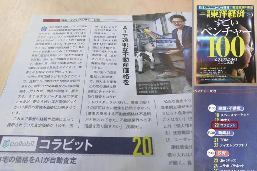 週刊東洋経済(2018 7/14号)の「すごいベンチャー100」にコラビットが選出されました。
