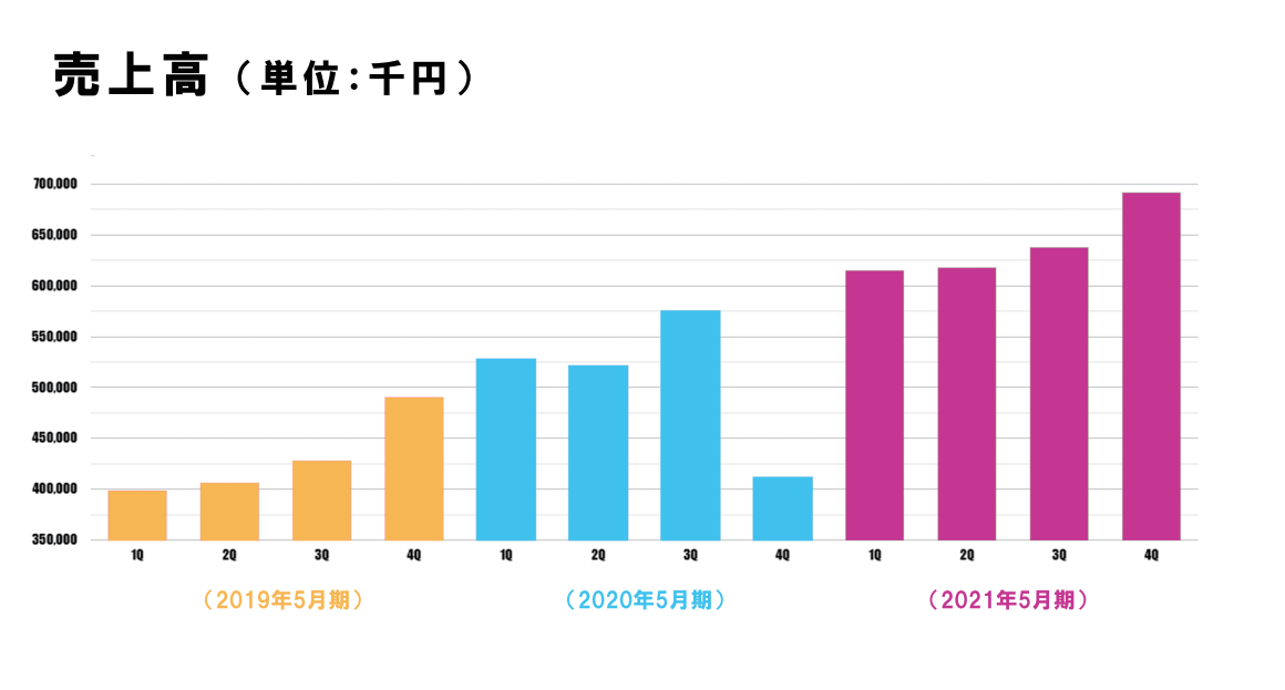 コロナ禍にもかかわらず、売上高は順調に伸びています。髪を切る、整える、とういうことが私たちの生活の中で必要なことであることの証明であると言えます。また成熟産業かつリアルビジネスで30%の成長が継続できていることは、私たちのビジネスが顧客、美容師の両方に価値を提供できている評価と思っています。