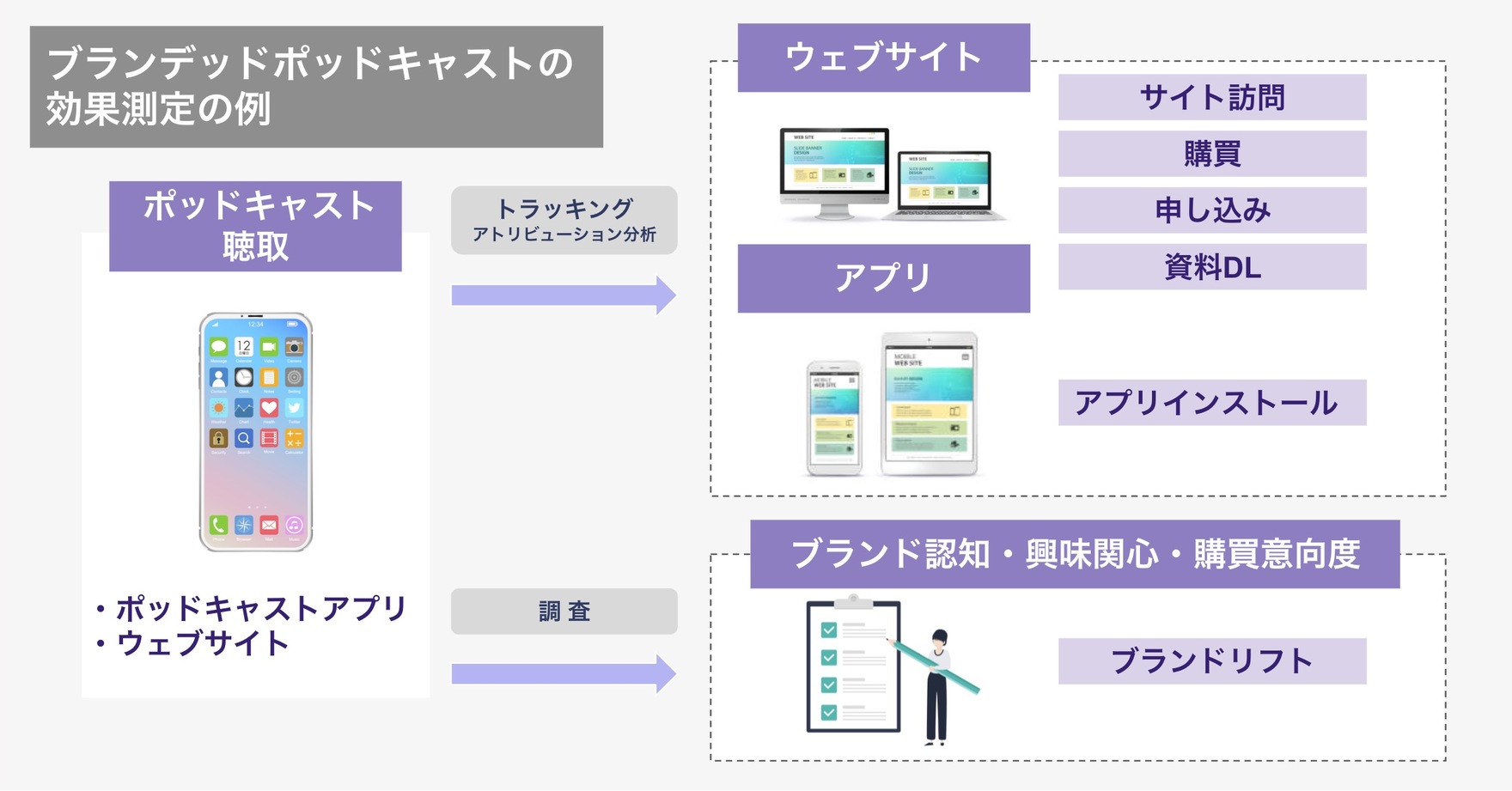 企業のポッドキャスト運営における効果検証にに対応し、企業のための音声コンテンツを活用したマーケティング活動を支援します。