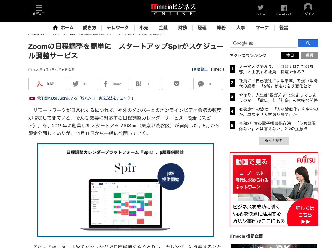 Zoomの日程調整を簡単に スタートアップSpirがスケジュール調整サービス