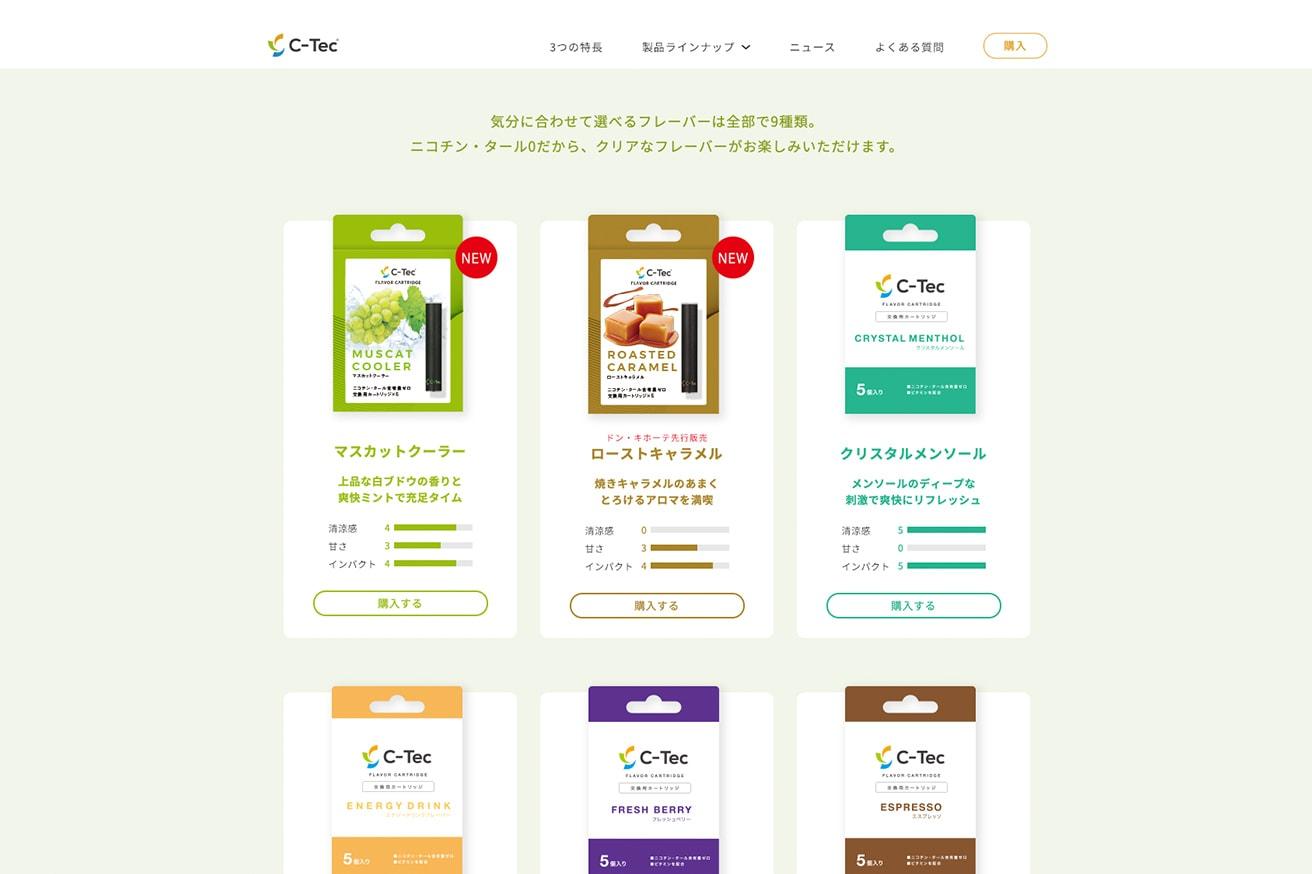 様々な楽しみ方ができる大人気電子タバコ「C-Tec」のトップページリニューアルを担当させていただきました。