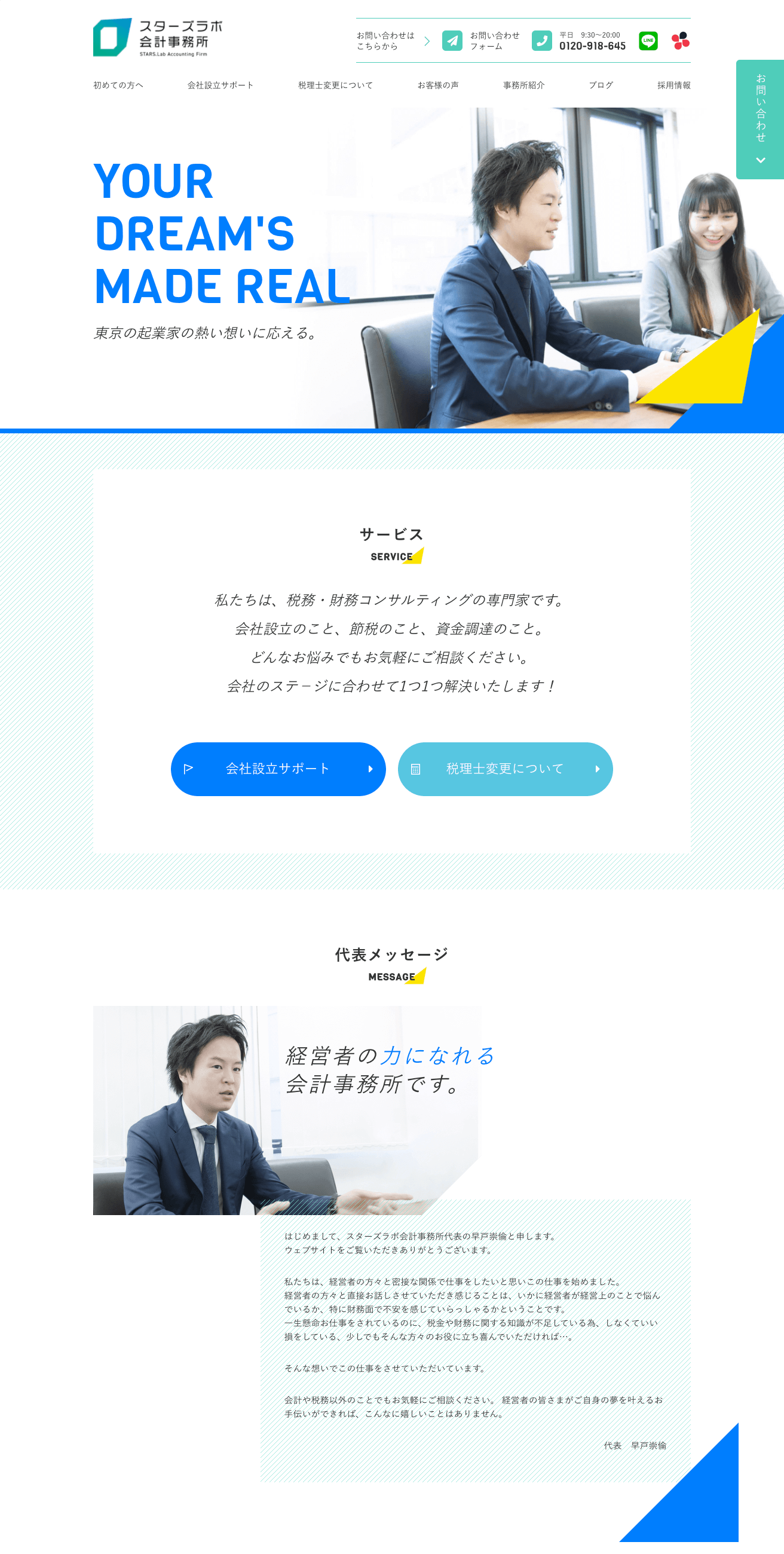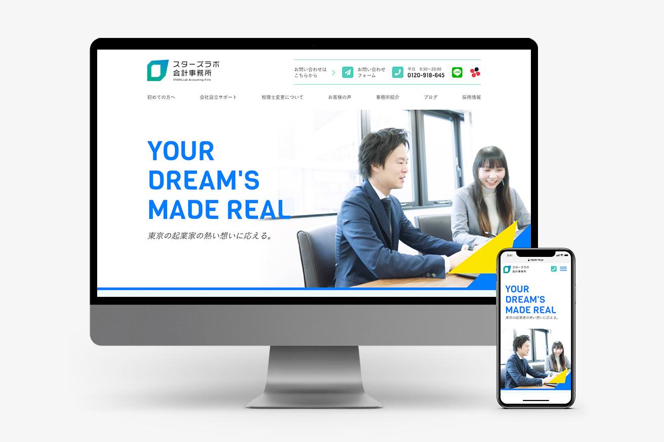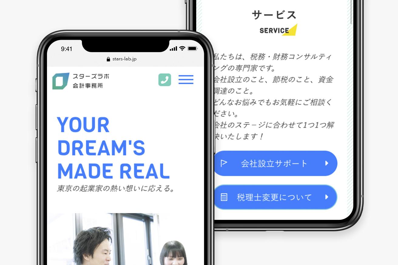港区南青山のスターズラボ会計事務所様のサイトリニューアルを担当。企業理念である「起業家の熱い想いに応える」を表現するために、新しいことにチャレンジする経営者を後押しできるような親しみやすく、明るいサイトを制作しました。情報更新をスピーディに行うため、ATTA CMSを設置。