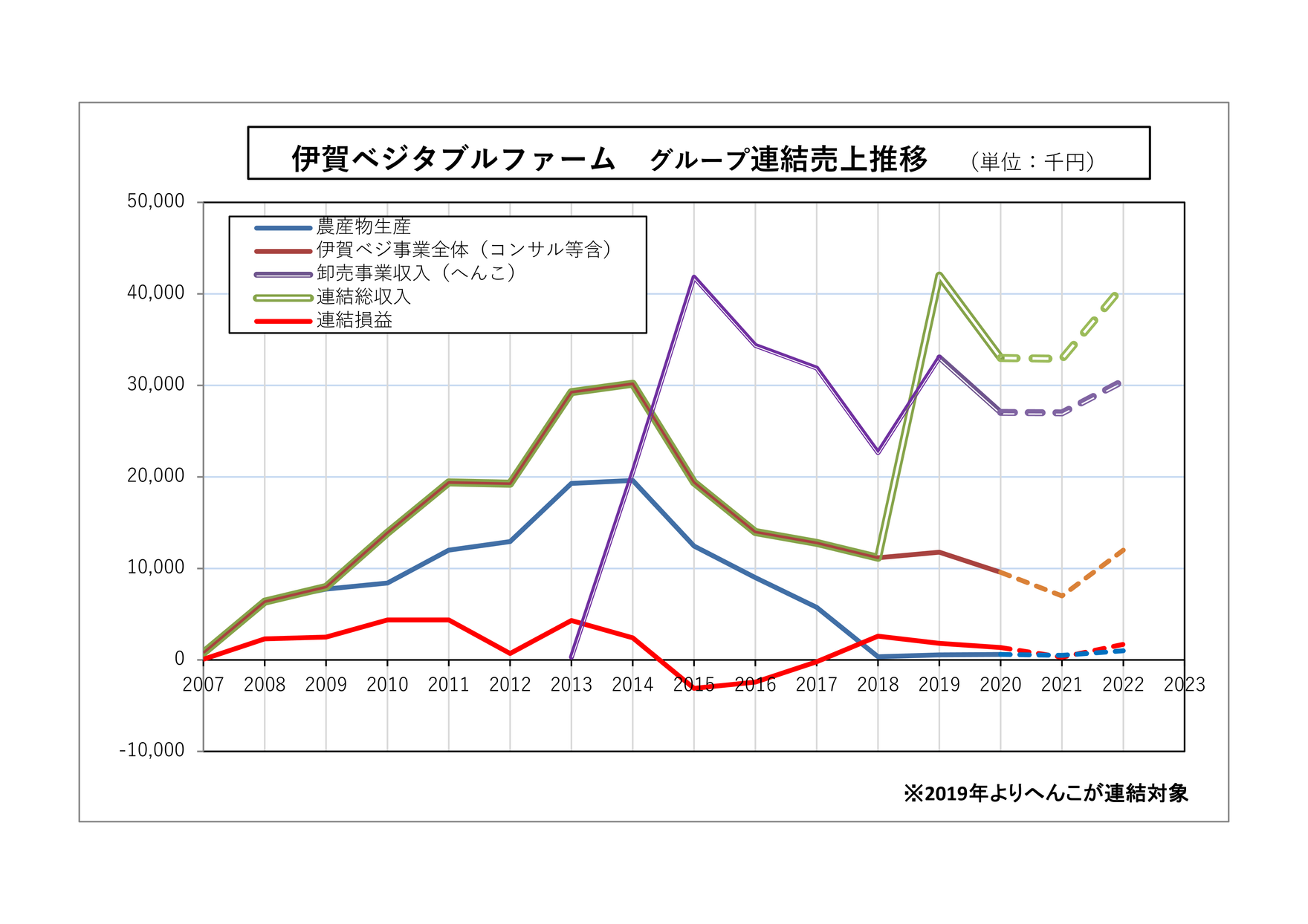 農場を始めた2007年以来の業績推移です。 流通事業を始めた2013年に一気に不安定になりましたが、 地道な業務改善や多角化によって徐々に体を為してきています。 新型コロナでまた足踏みというところはありましたが、 いよいよこれから本格的に成長をしていければと考えています。