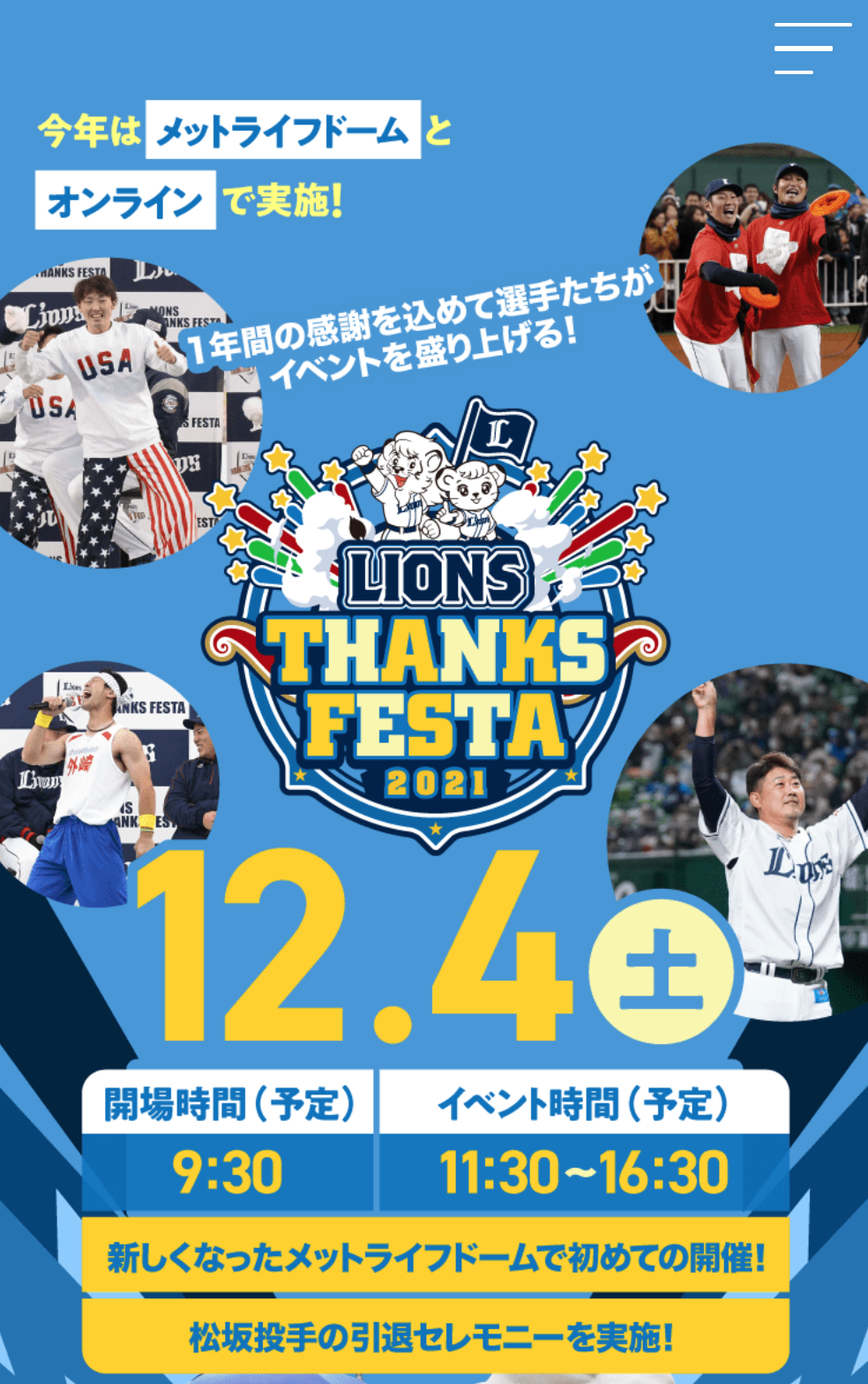 【案件概要】パ・リーグ球団「埼玉西武ライオンズ」の2021年度サンクスフェスタ特設サイト制作