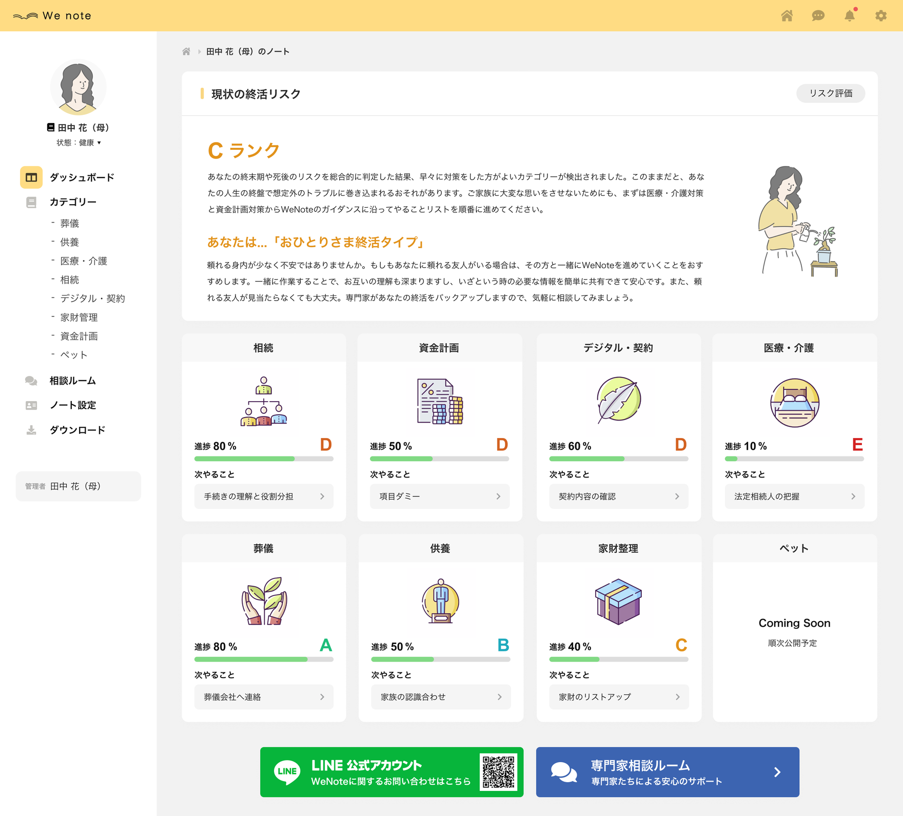 40代からのライフデザインツール「WeNote」のUI/UXデザイン、LPデザインを担当しました。