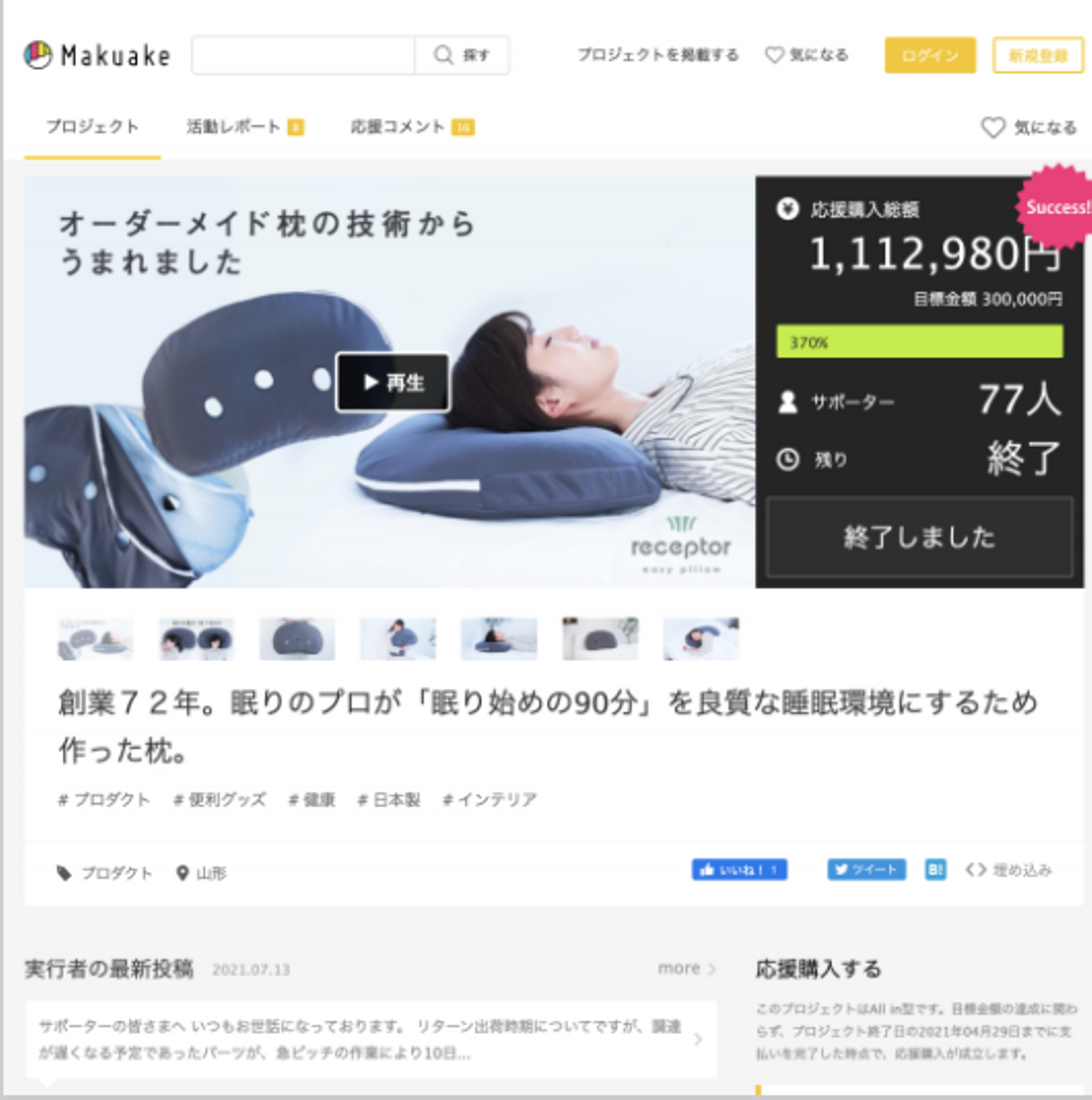 開始1週間で目標金額を大きく上回る実績を作ることができた。