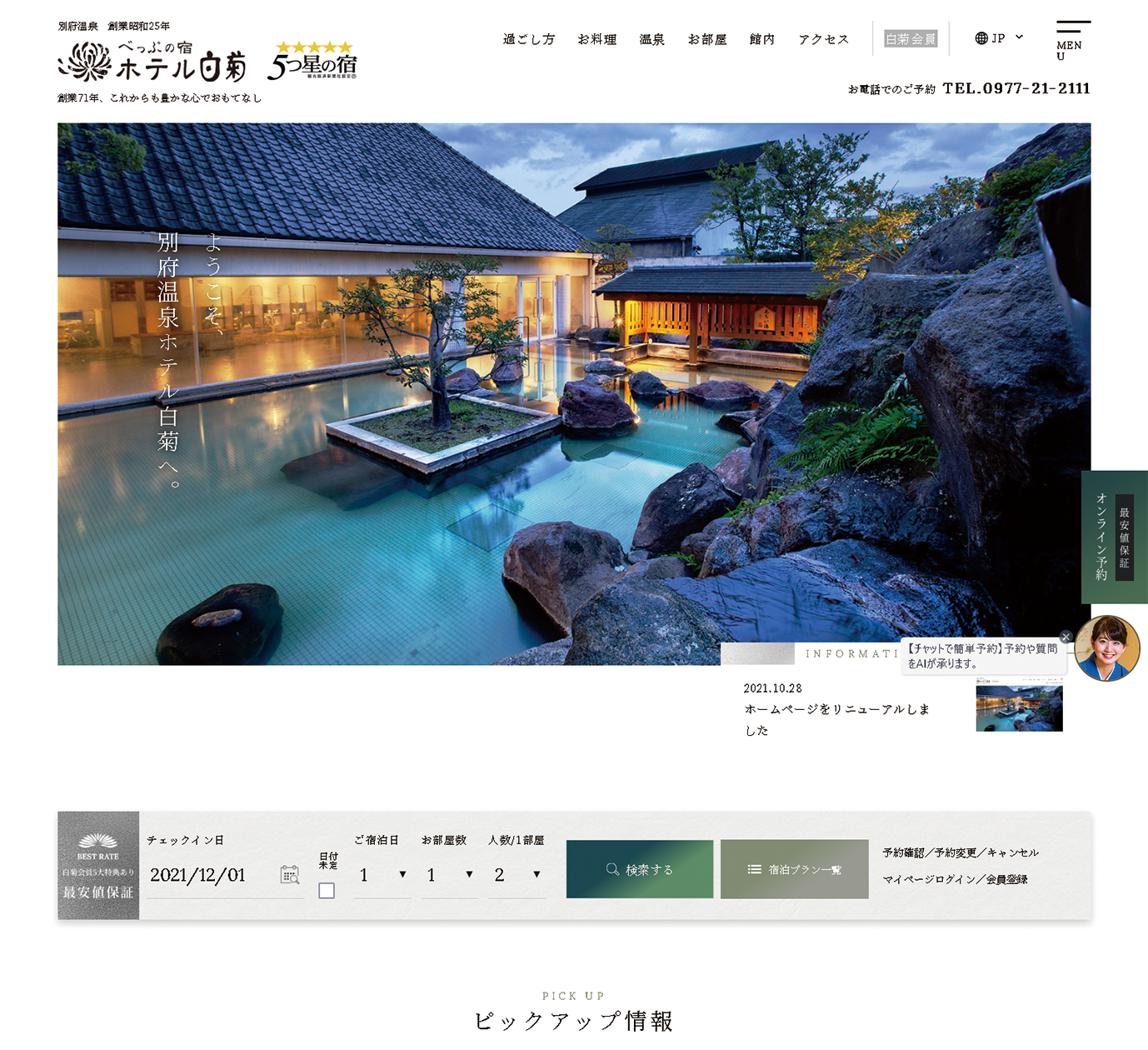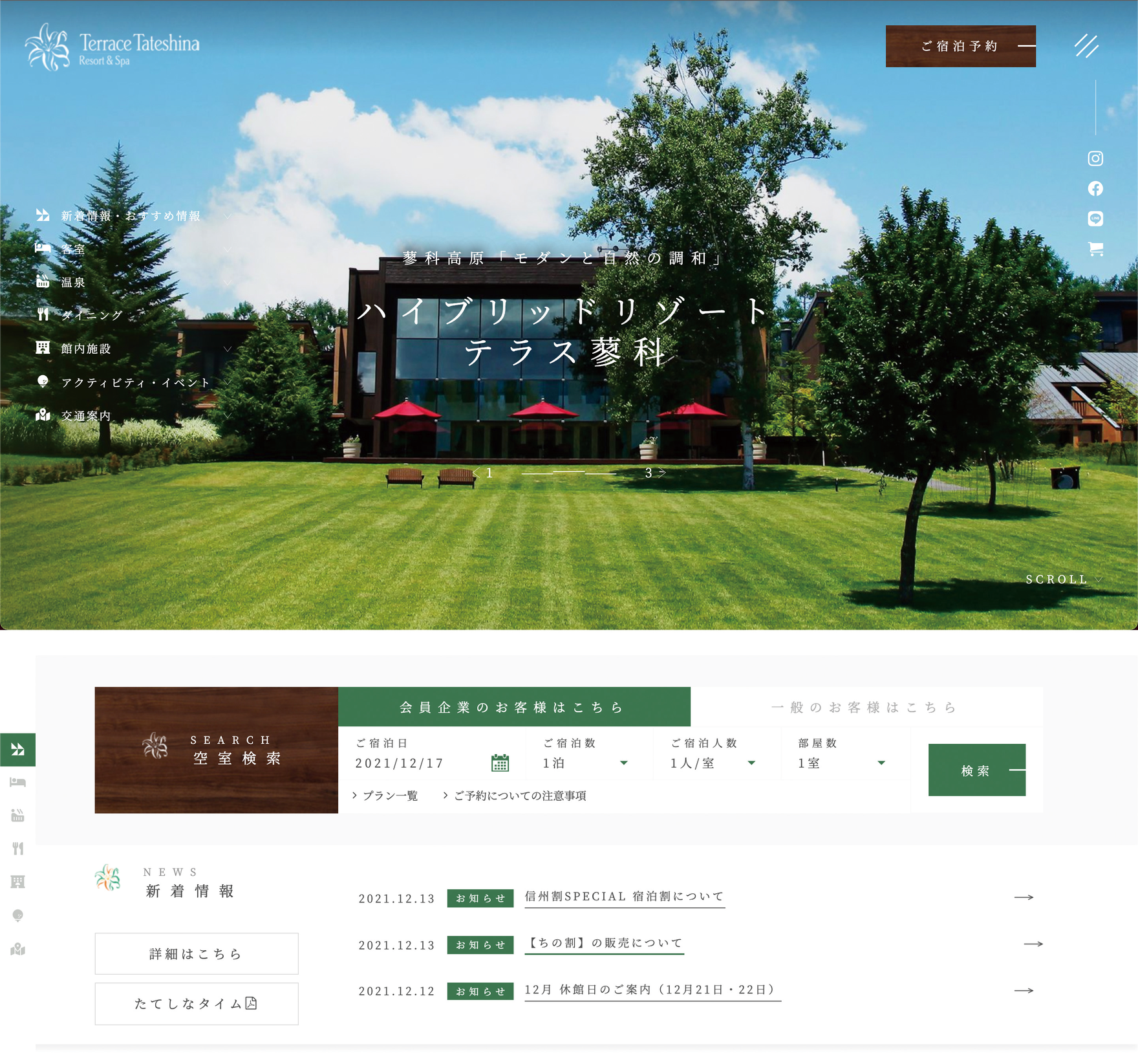 株式会社アビリブが制作した、旅館・リゾートホテルの実績の一例です。