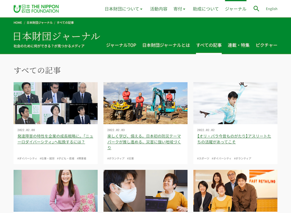 日本財団の公式ウェブメディア「日本財団ジャーナル」の企画・編集業務を立ち上げ当初より行なっています。