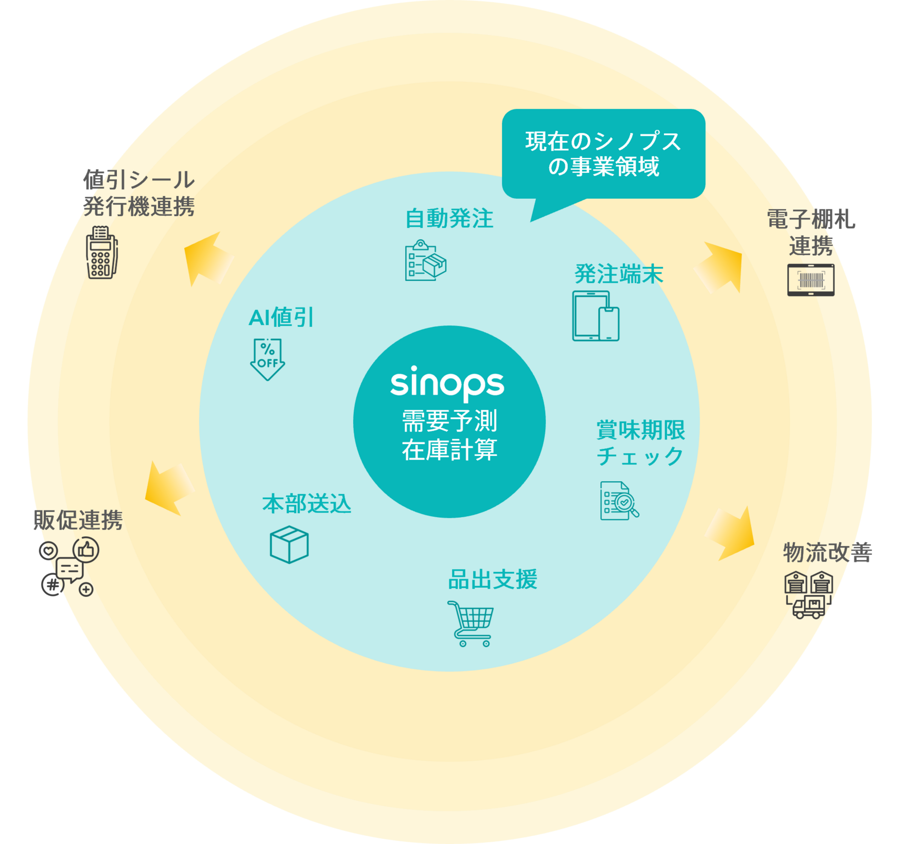sinopsは小売業では17.4%、食品スーパーに絞ると30%以上のシェア率があります。