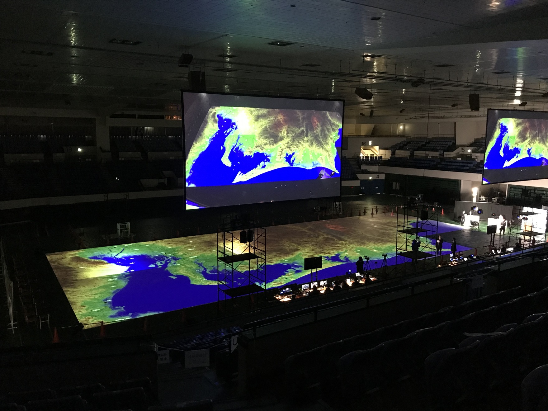 表示されている標高データやその他表示コンテンツを作成し、ワークショップ当日は、表示コンテンツの切替えのオペレーション等を行いました。