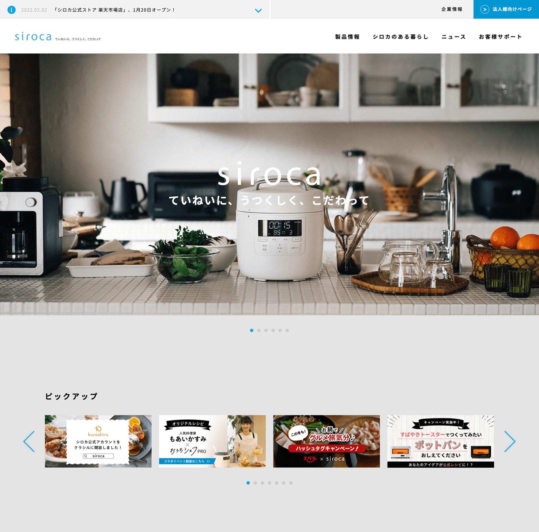 新たなブランドイメージとしての設計を行い、既存ファン以外へのsirocaの製品、企業イメージの認知と向上を目指し、コーポレートサイトのリニューアルを行いました。