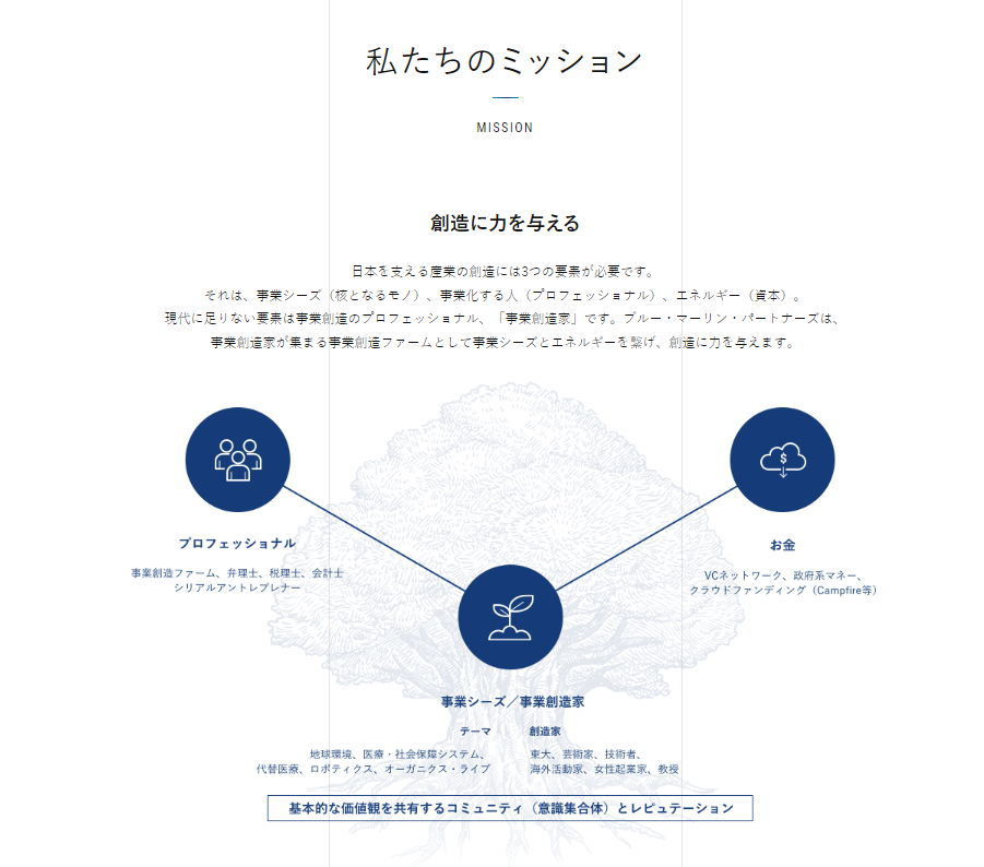 ブルー・マリーン・パートナーズ ミッション「創造に力を与える」