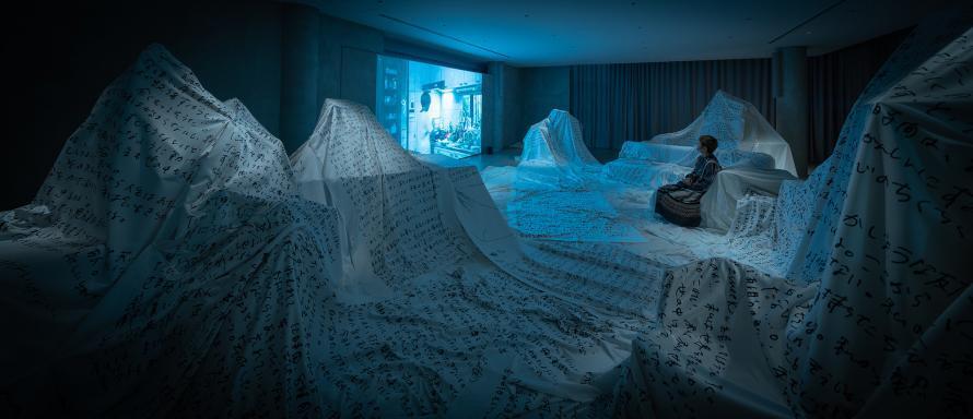 本展において展示した作品群は、CRAZY WEDDING創設者である山川咲が、同社から独立する前後からコロナ禍によって偶発的に始まった島暮らしまでの数ヶ月間におよぶ個人的な物語をベースに、アーティストの田中英行との共創によって生み出されている。オブジェクト、映像、手紙、匂いや音など、多様なメディアをミックスしたインスタレーションが各フロアに配され、それらの鑑賞体験を通じて個人の記憶に触れながら、新たな自己との出会いを感じる展覧会としての試みを行った。