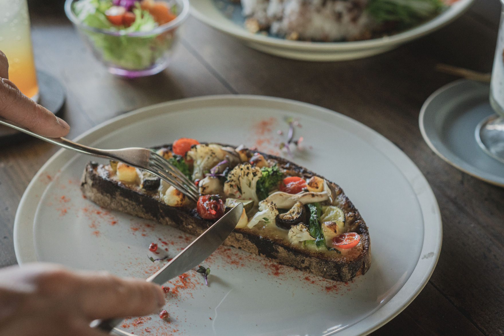 素材にこだわった薪窯パンのオープンサンド、