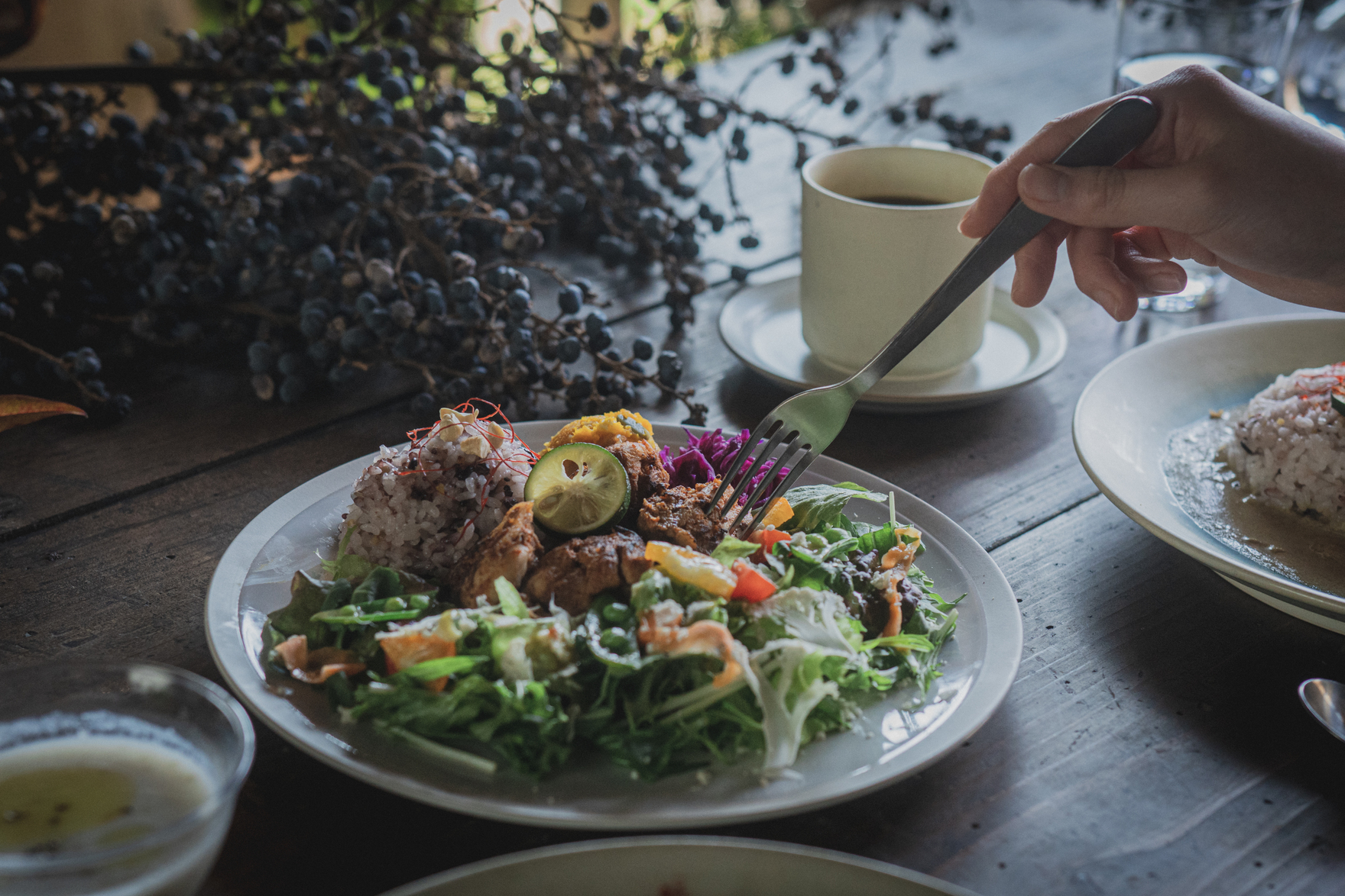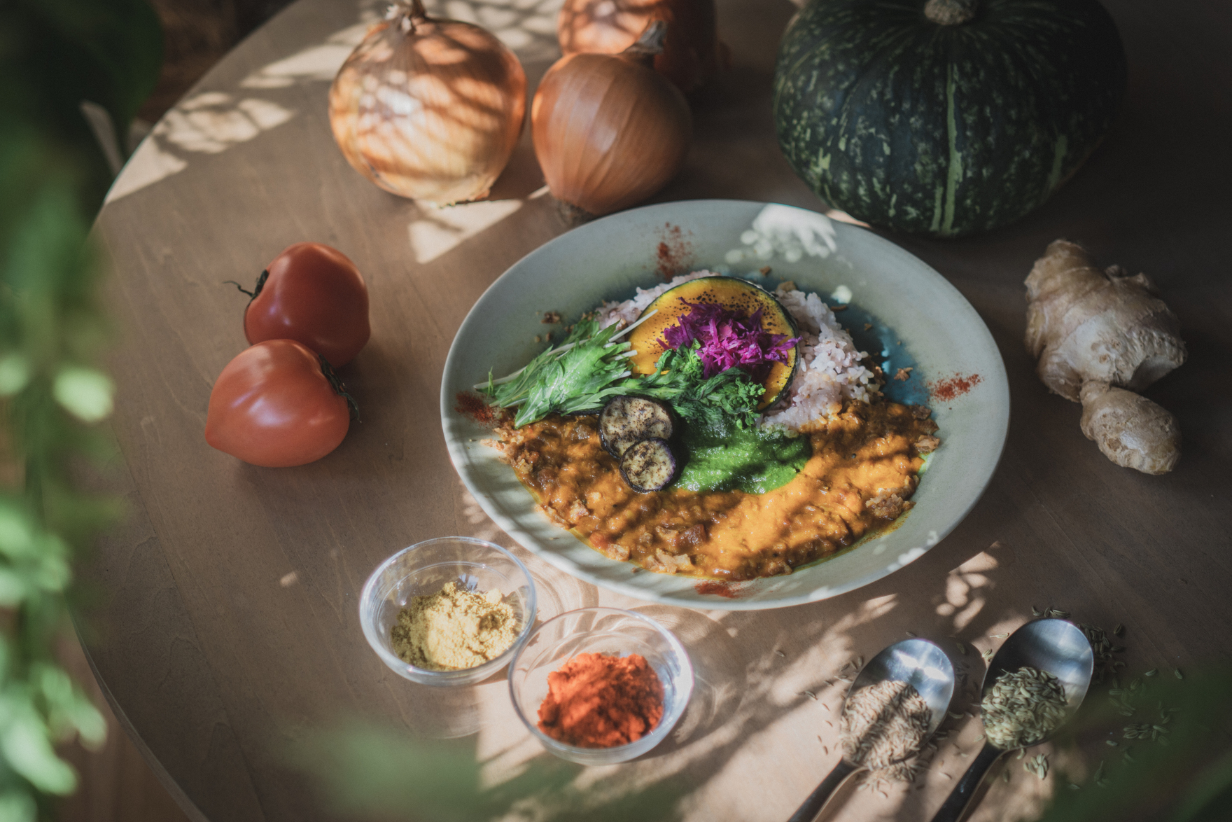 地元で採れた新鮮な野菜を使ったオリジナルスパイスカレー、