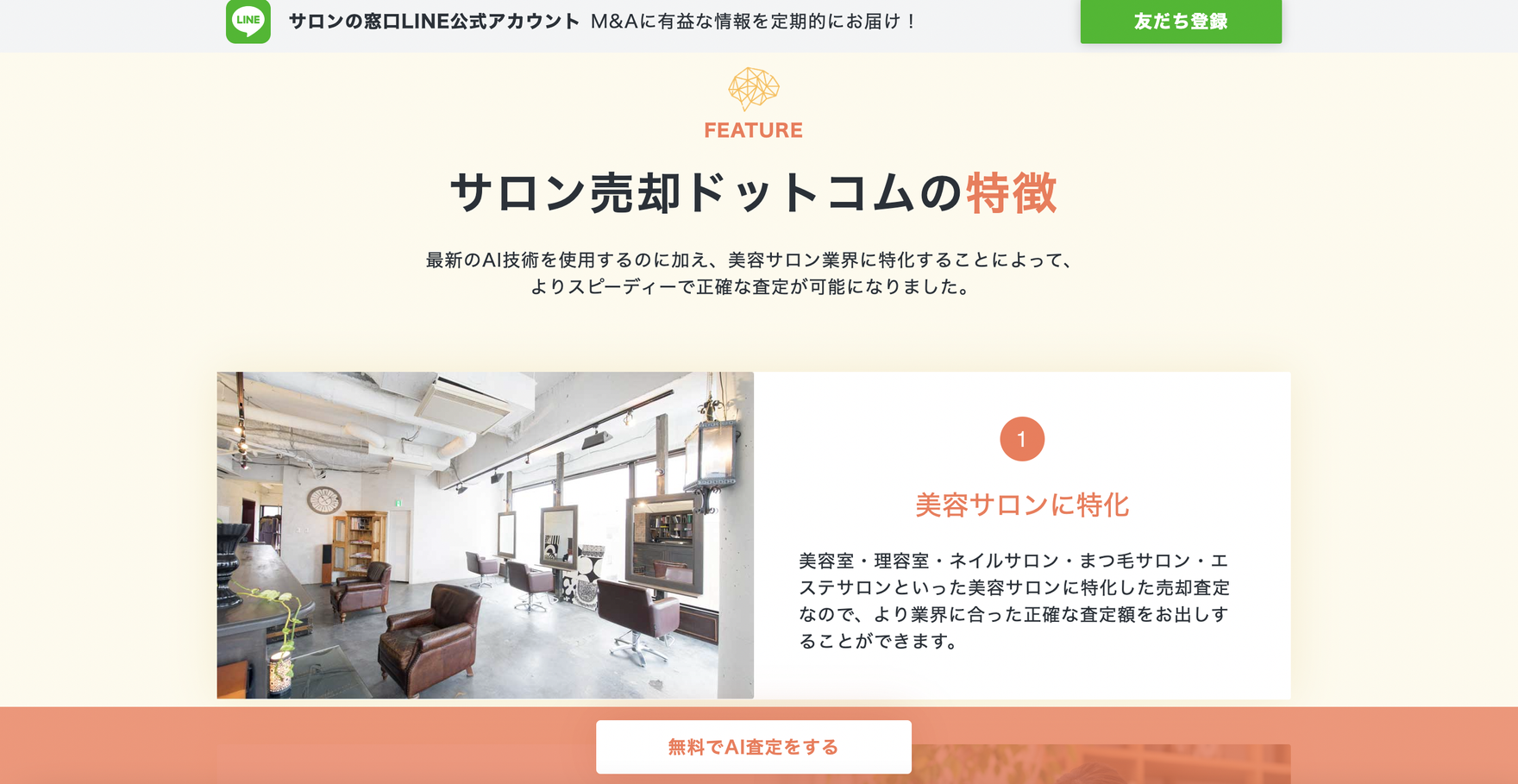 事業継承の問題でサロンを売却したいオーナーや今、運営している美容室の価値を知りたいオーナーをターゲットとしている事業です。