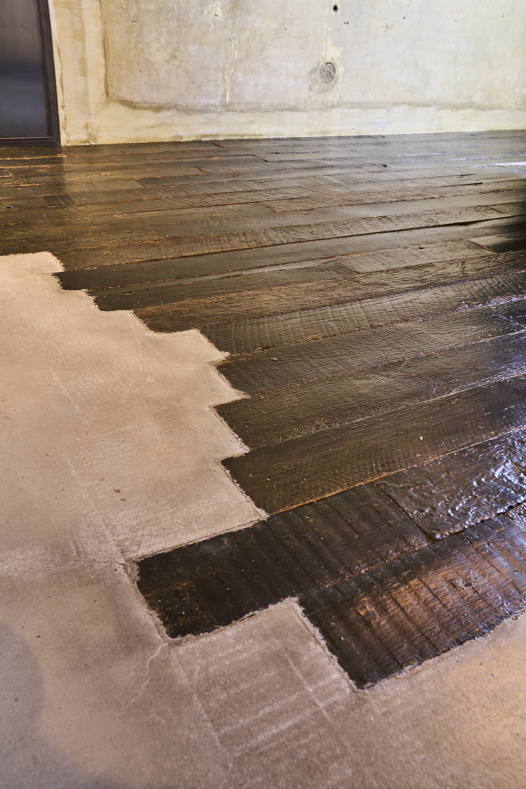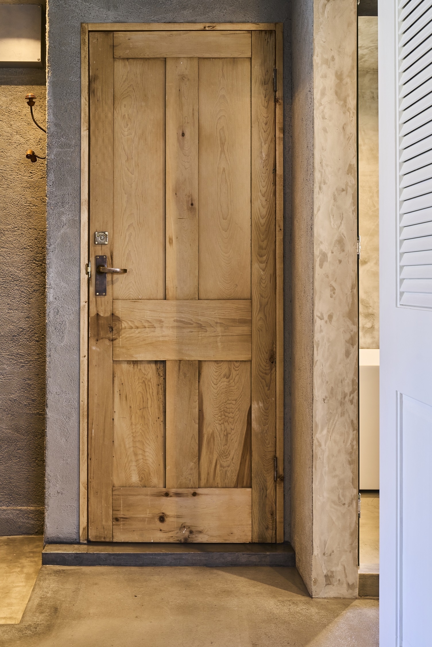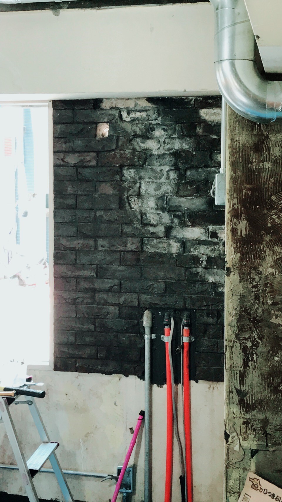 特殊な素材で左官を施しています。色調は墨を混ぜて無骨さを演出。