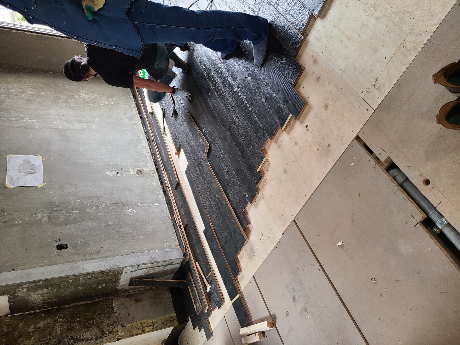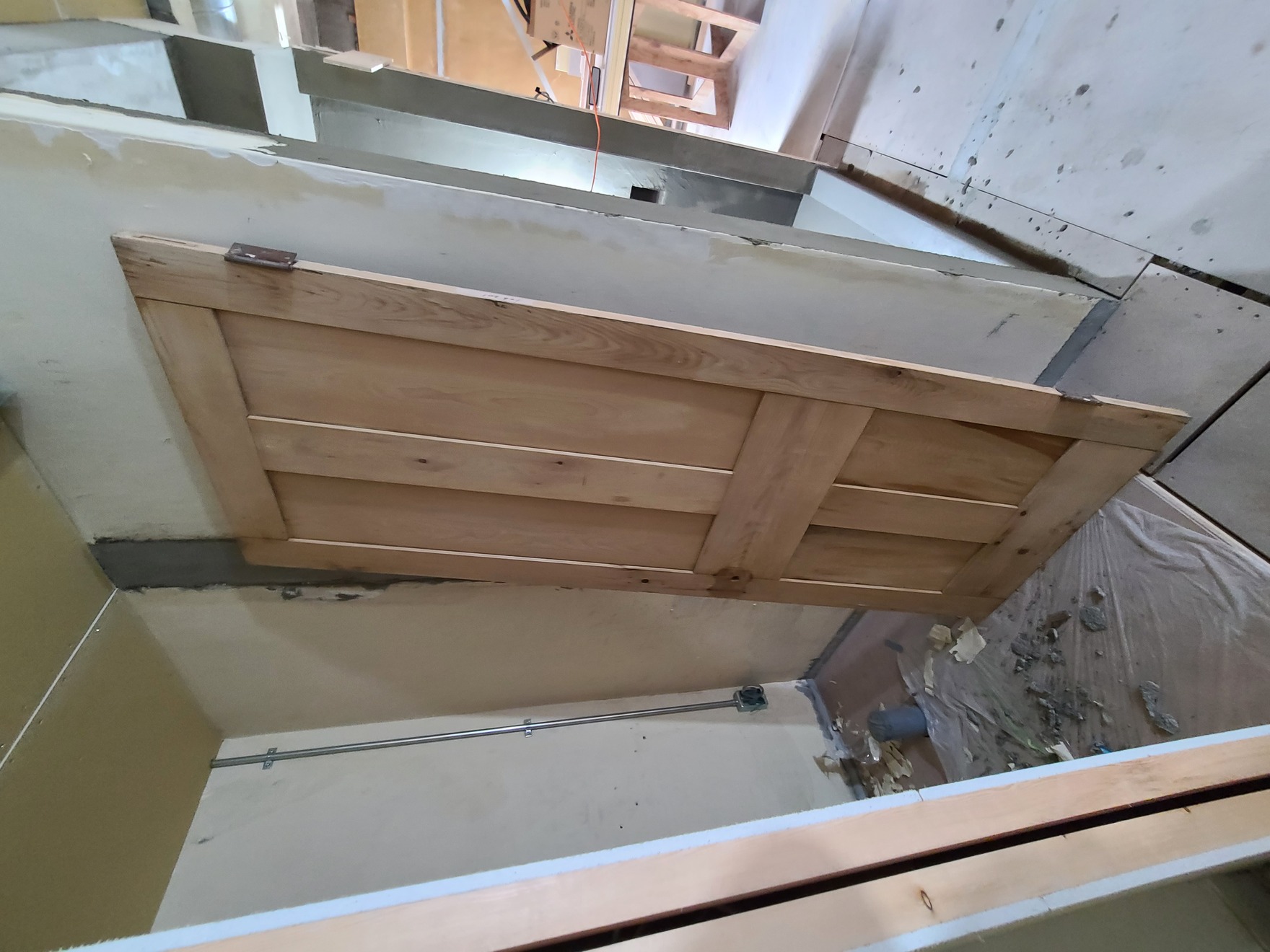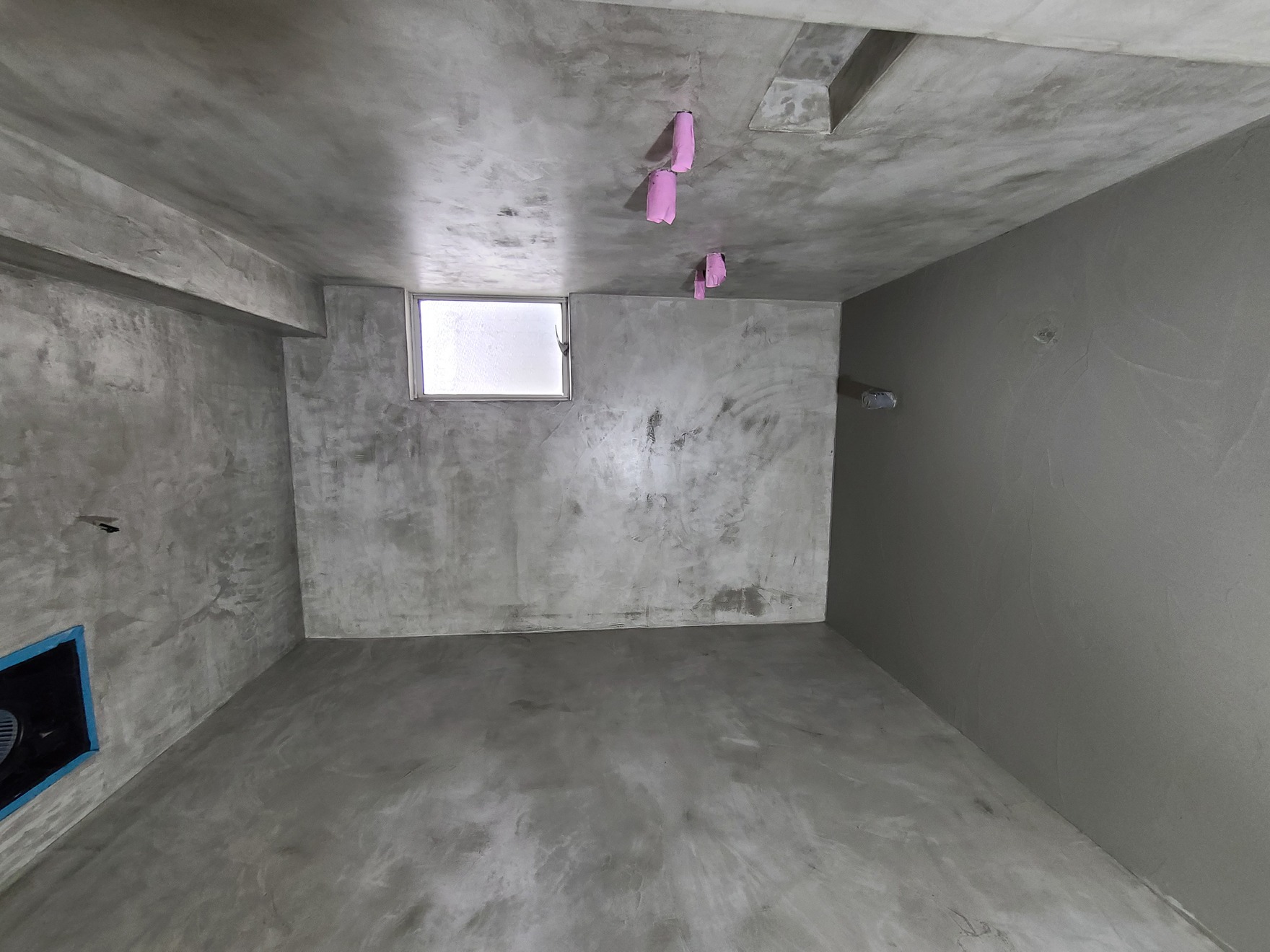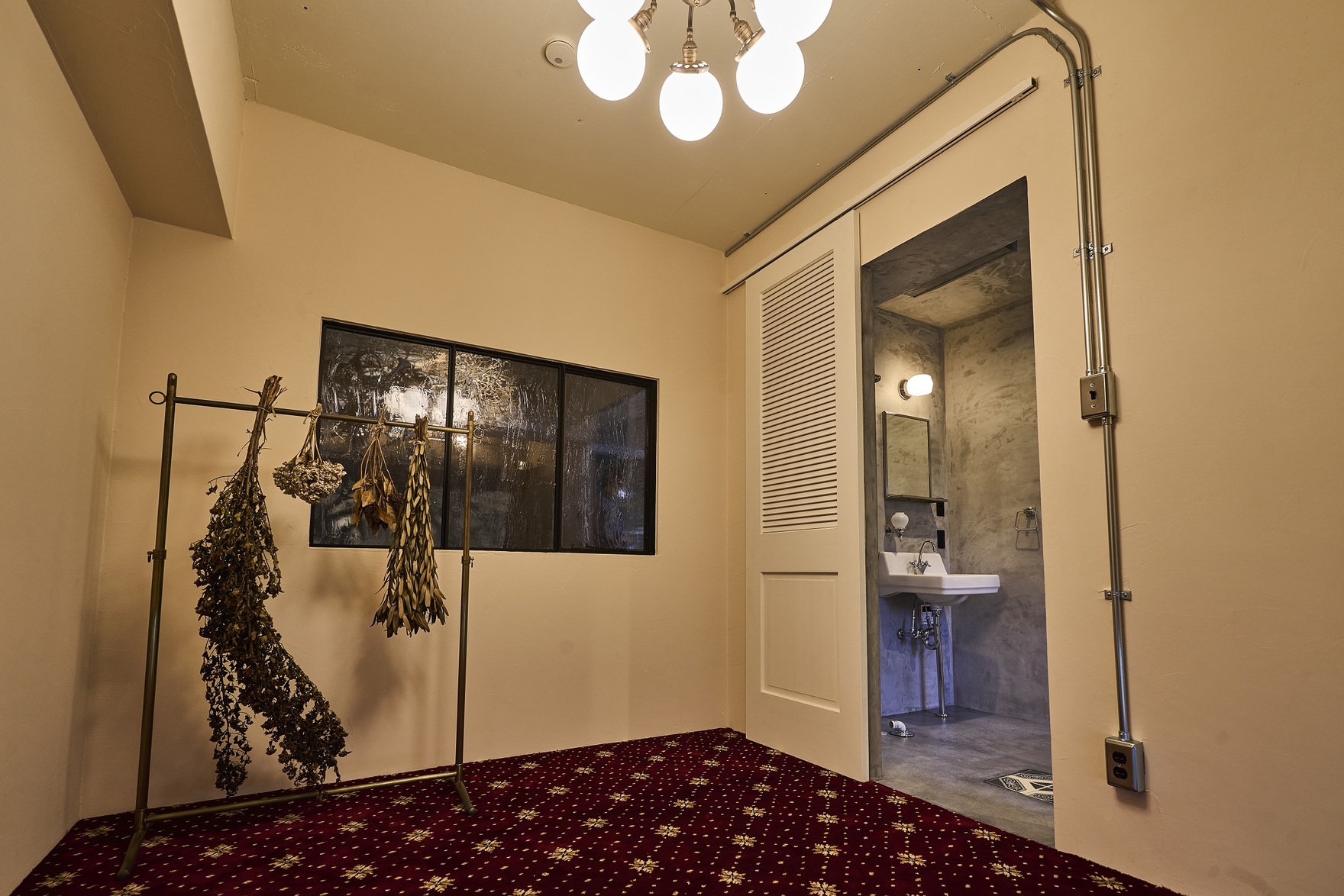 特殊な素材で左官を施しています。色調は墨を混ぜて無骨さを演出。
