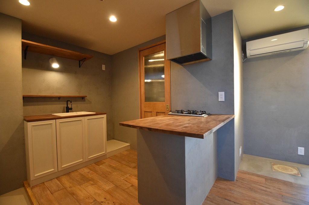 またまた壁は左官仕上げ。落ち着いた空間に仕上げました。