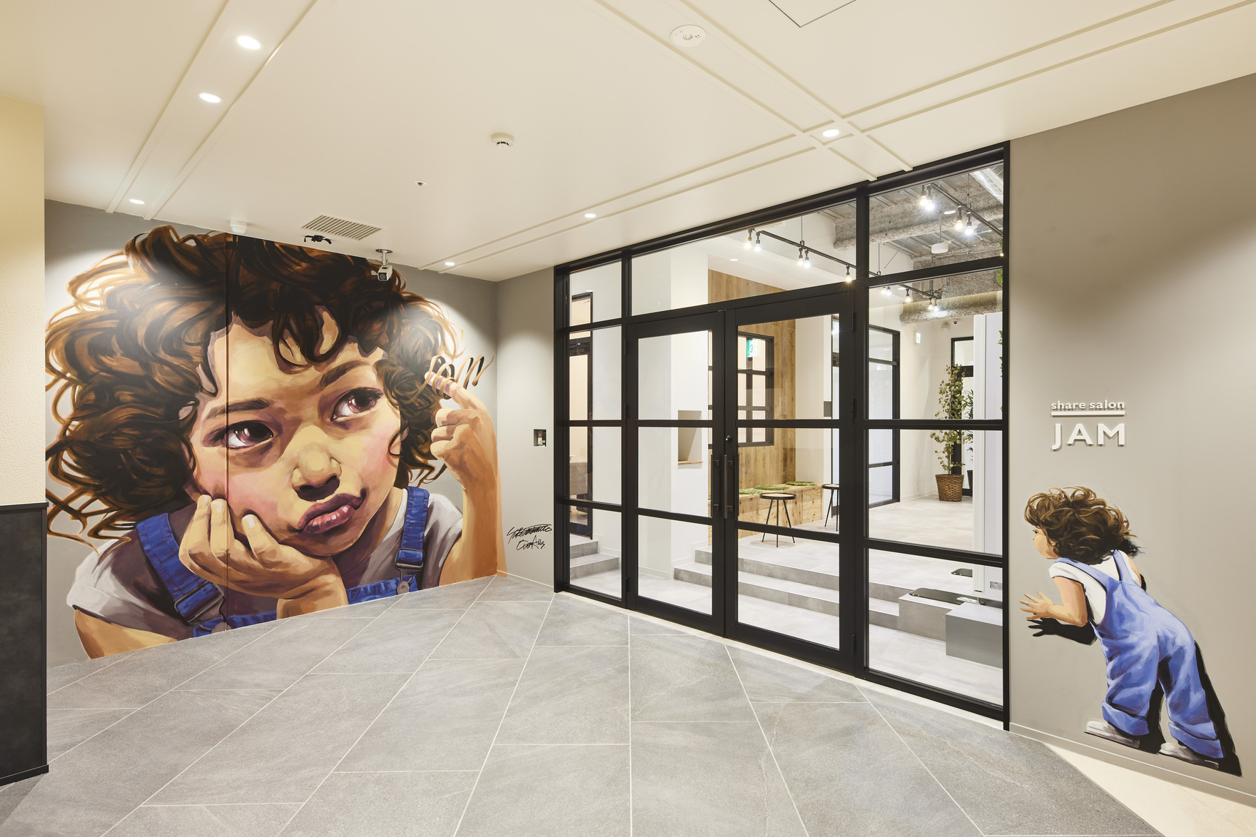 JAM内は新進気鋭のアート企業の作品が彩る空間に加えてIOTが完備。芸術的かつ最先端の空間があなたの仕事に無限大の可能性をプラスする。 コンセプト「BEAUTY×ART」の空間は来店されるお客様からも大好評。