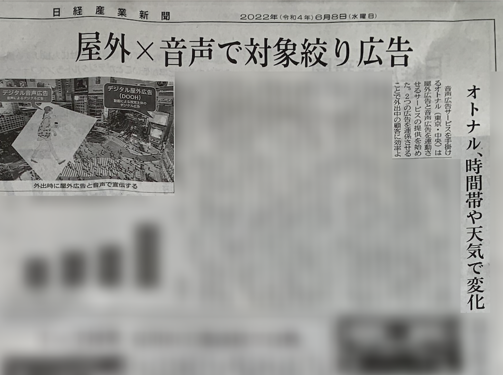 ※2022年6月8日「日経産業新聞」にDOOH(屋外広告)×音声広告配信の取り組みについて掲載されました。