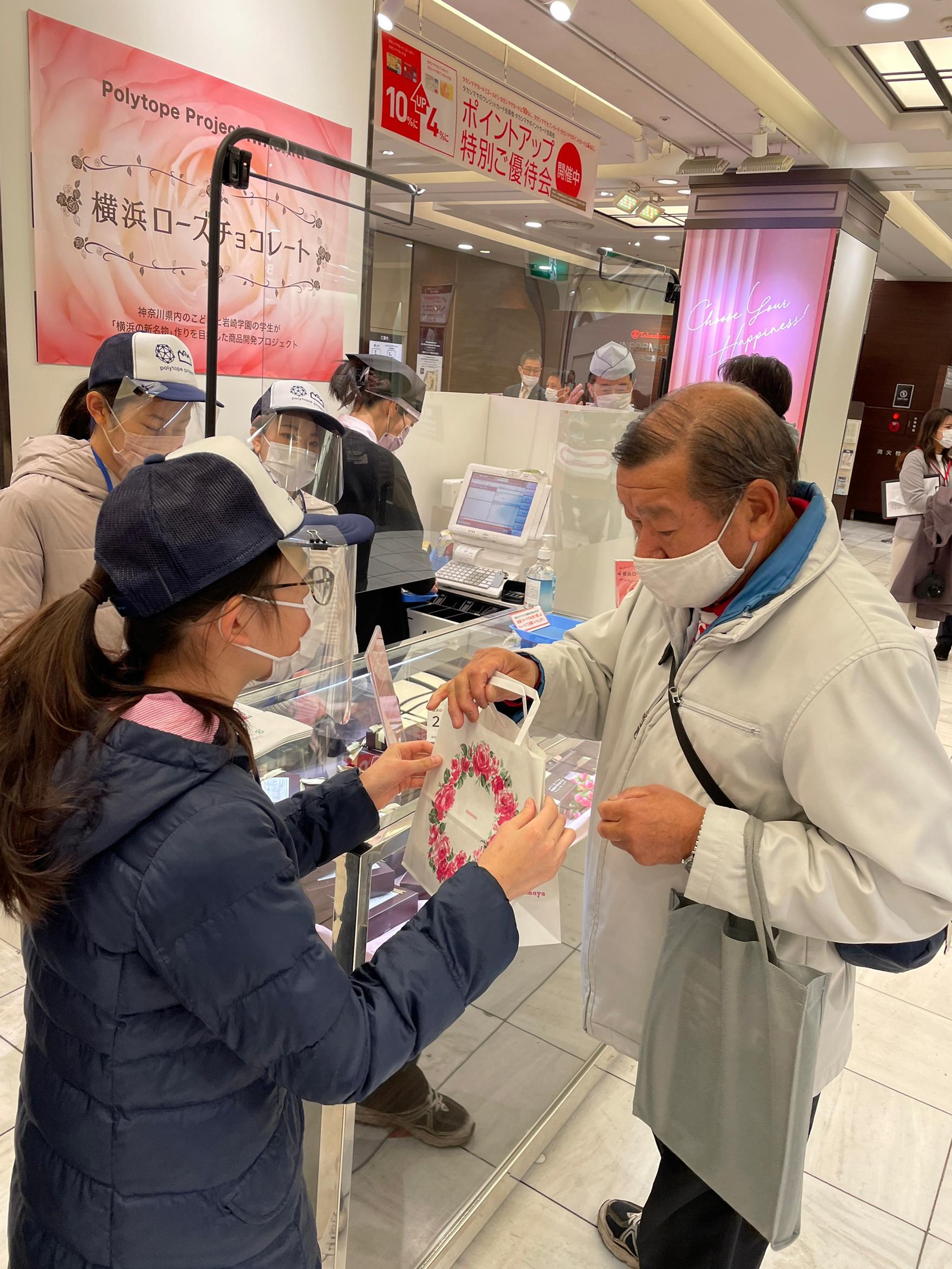 初年度は横浜の市の花「バラ」をテーマにしたお菓子の商品開発を行い、ターゲット設定から商品企画、パッケージなどのデザインまで学生とこどもが中心になって行い、髙島屋横浜店で実際にこども達が商品を販売した。