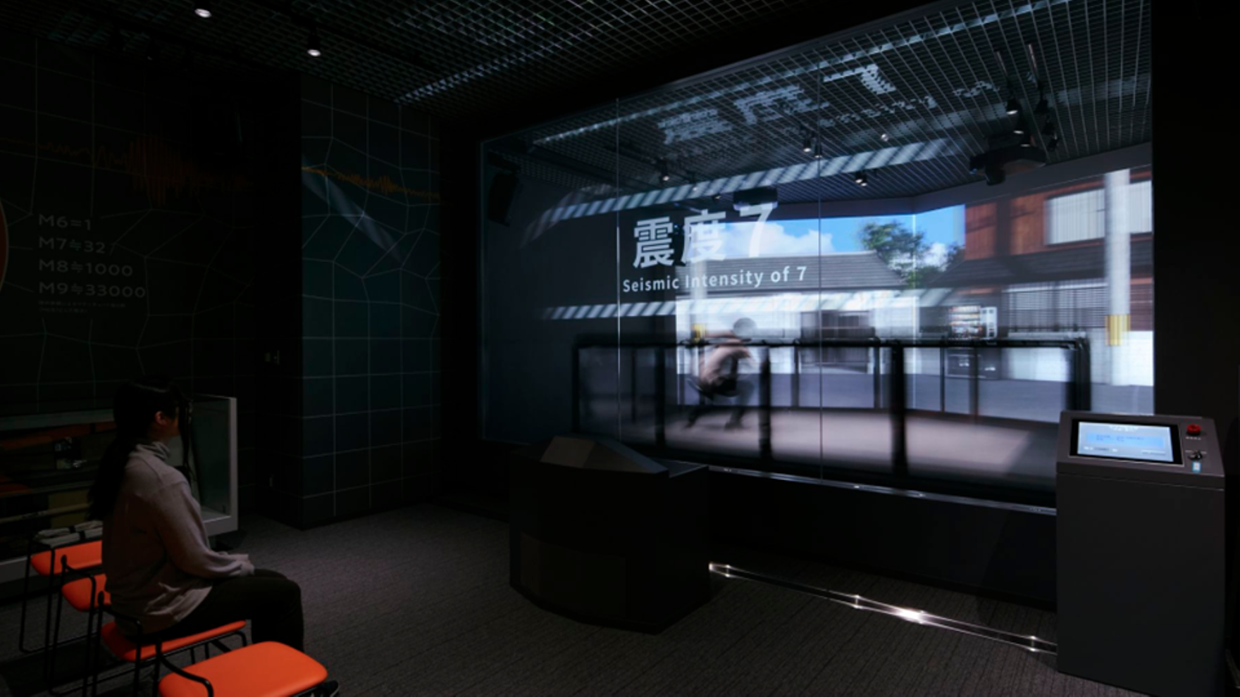 東京都 墨田区にある防災学習施設『本所防災館』の地震体験コーナーで、「起振機 × 大型透過スクリーン × プロジェクション」での演出を行いました。