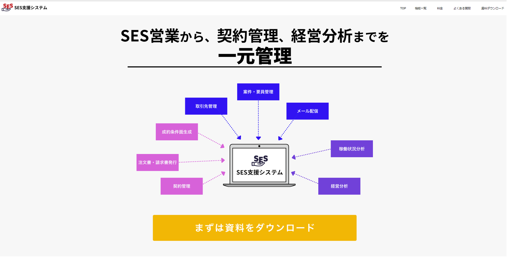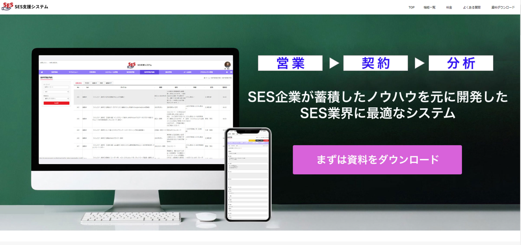 SES営業のメール配信から契約管理・請求管理、経営分析までを一元管理できるシステムです。