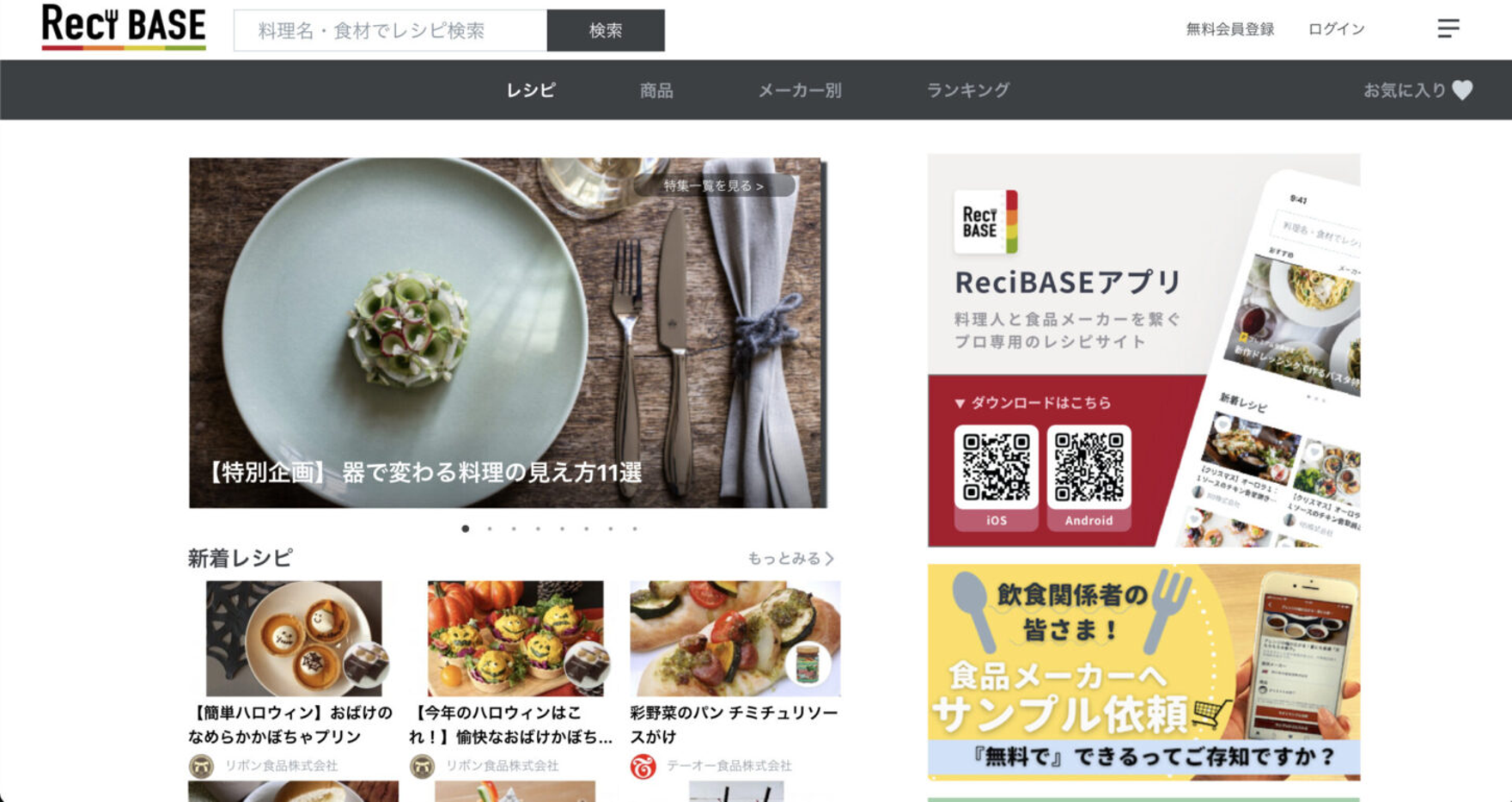 Reci BASE(レシベース)は、業務用食品メーカーが飲食店向けに特化して開発したレシピと、そのレシピに使用している商品のサンプル取り寄せがオンライン上でワンストップで出来るWebサイト&アプリです。