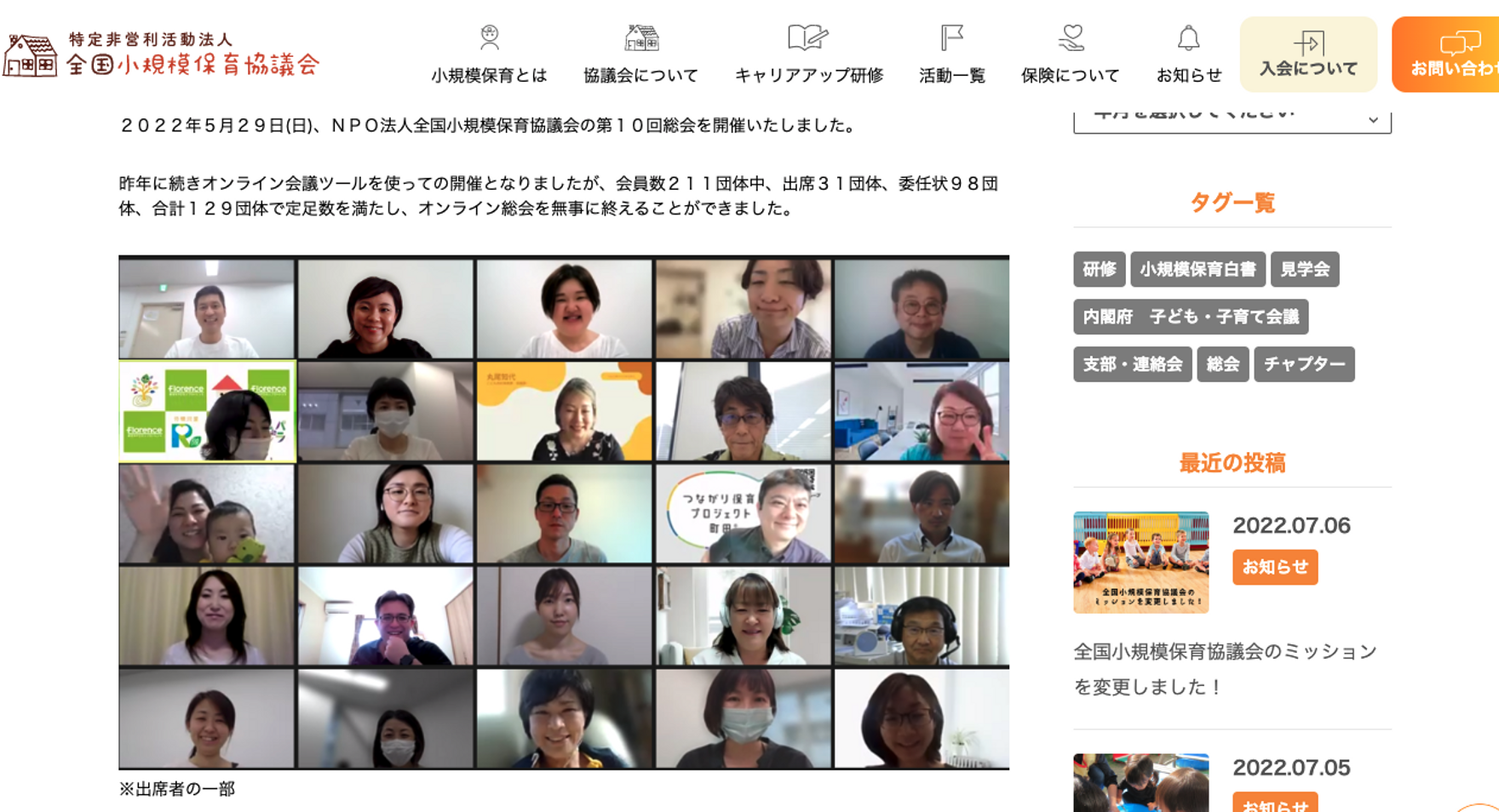 今回は小規模保育協議会発足より理事長を担って参りました駒崎が理事長を退任し、2022年6月1日より現理事でもあります上野が次期理事長となることが報告されました。
