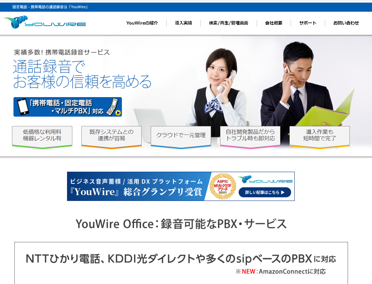 会社の固定電話・携帯/スマートフォン、対面会議、web会議などあらゆるビジネス会話を自動で録音収集し、クラウド上にて一元管理が可能。自動テキスト化機能を備え、統計化・会話解析機能を活用したVOC/トレンド分析や応対品質評価が可能なサービスです。