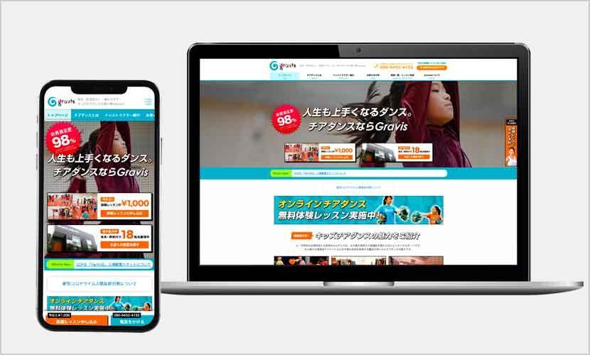 東京都町田市のキッズチアダンススクール、株式会社Gravisのサイトリニューアルを実施しました。リニューアルを実施させていただいた結果、サイト経由のお問い合わせは145%に改善しました。