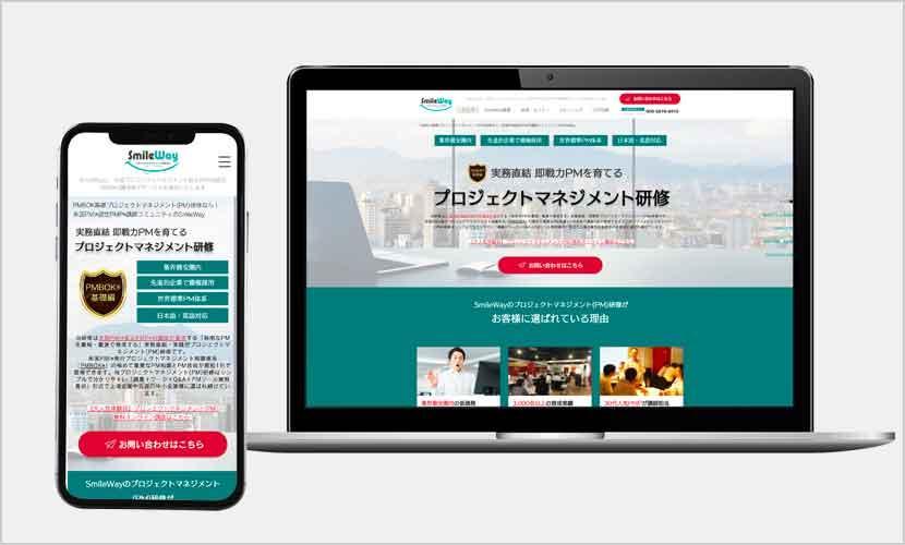 プロジェクトマネジメント研修講師派遣サービス、SmileWayのサイトリニューアルを実施させていただきました。リニューアル前後比較でUU数が約4,5倍、PVが約7倍に伸長しました。