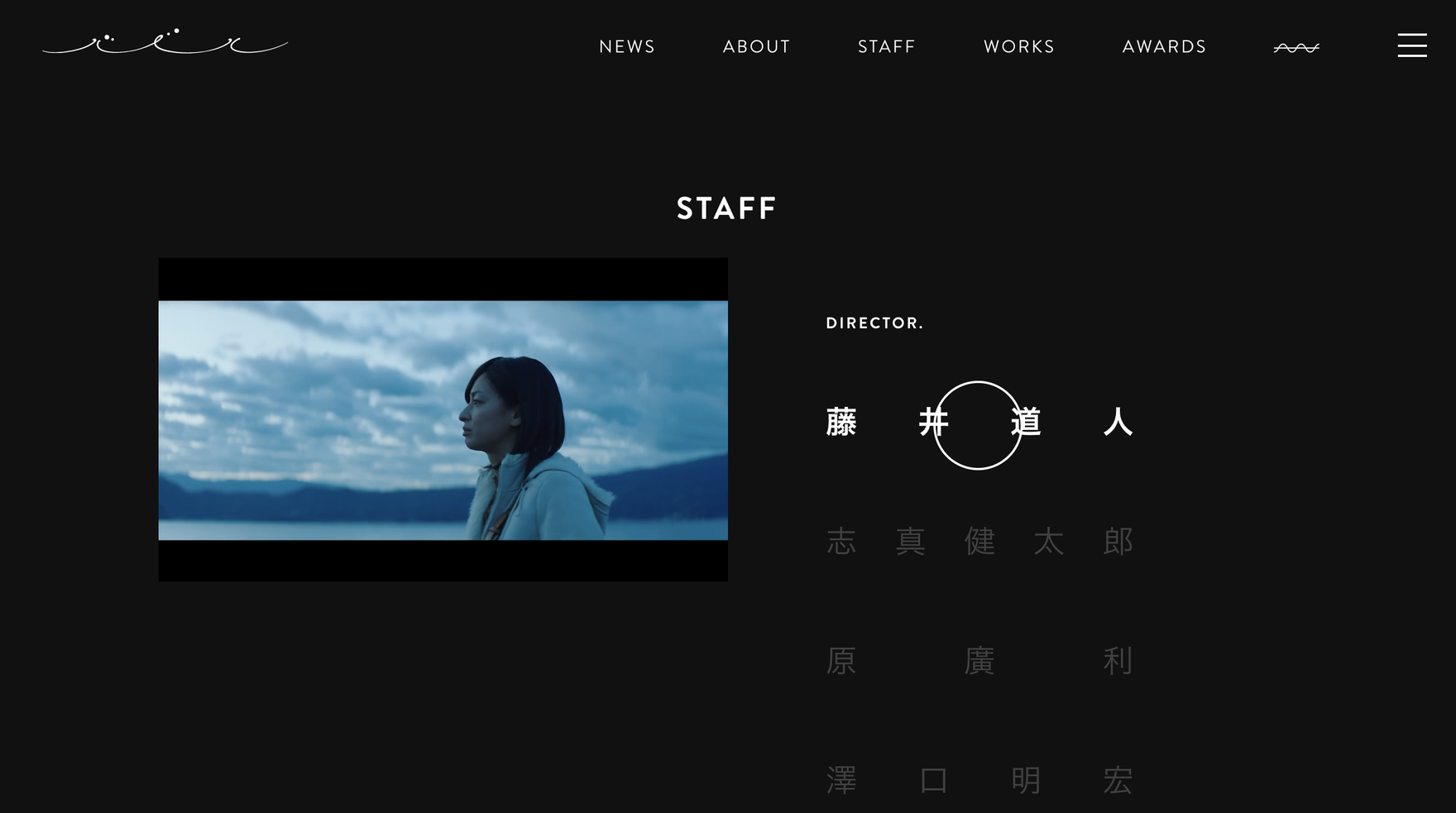 また、最短で各種リールが見れるよう、トップページに動画再生プレイヤーのような機能を盛り込み、ディレクターとカテゴリの切替・再生ができるように工夫しています。