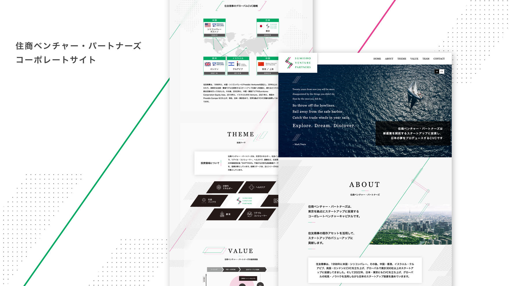 スタートアップに投資するCVCとして、「旅に出る」躍動感をデザインで表し、Webサイトとして細かい動きまで発注者様の想いをカタチにした制作