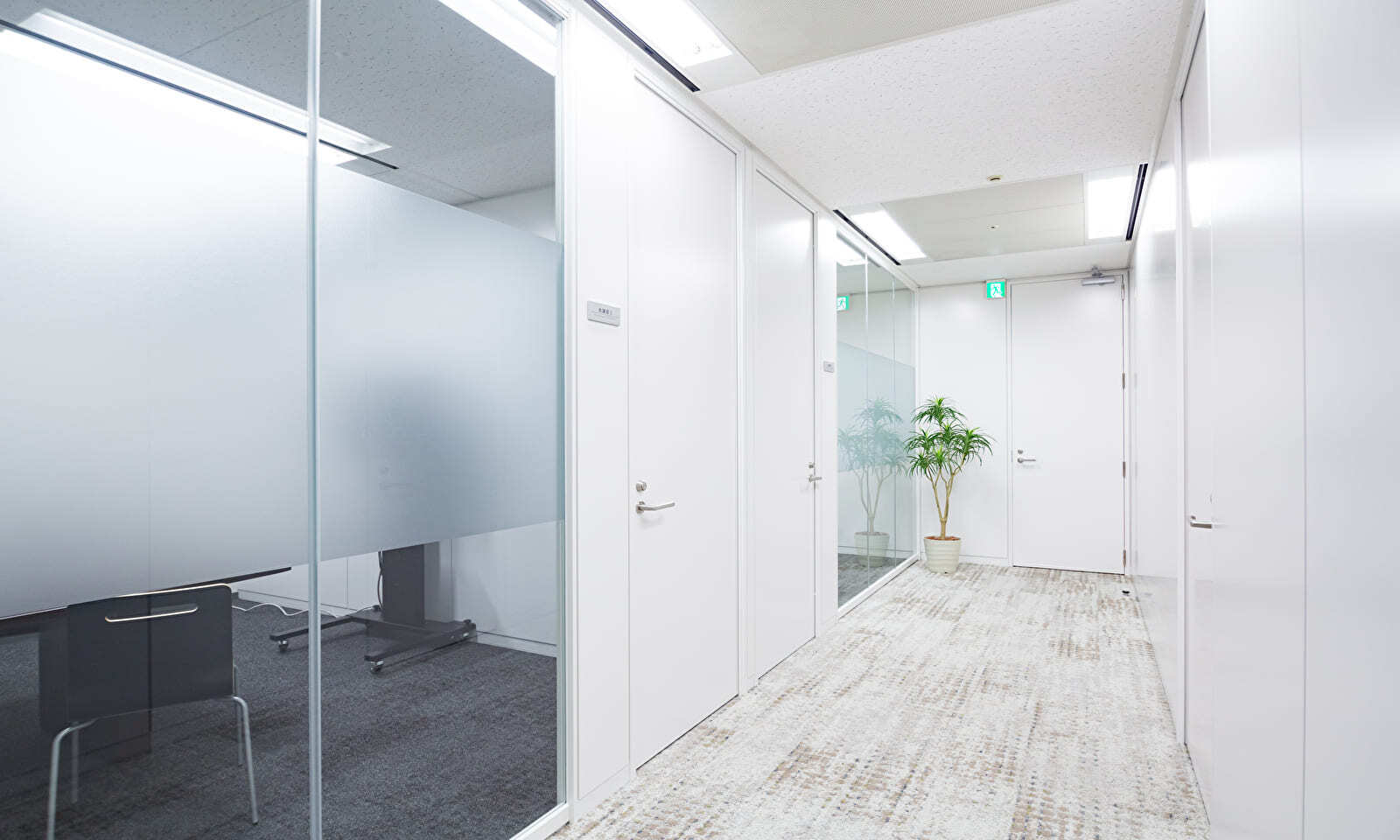 ナチュラルオフィスの要素を取り入れながら、株式会社アドバンテック 様 大阪営業所(大阪市北区)のご移転工事をお手伝いさせて頂きました。奥行き感があって開放感のあるオフィス空間にしたいというご要望でしたので、エントランスには落ち着いた木目調空間の中にガラス製の会社サイン。会議スペースと通路にはガラス壁や天井まで届く大きなドアの構成でのデザインで設計・施工させていただきました。