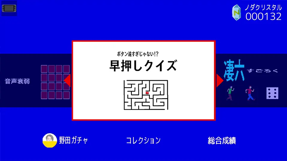 スーパー野田ゲーPARTYを遊ぶともらえるゲーム内通貨『ノダクリスタル』。それを使って野田ガチャを回すと、ゲーム内で使われているキャラクターやアイテム、音楽を集める事ができ、いつでも楽しむことができます。かなりの数があるので、集め終わるのに約3年ぐらい必要です。