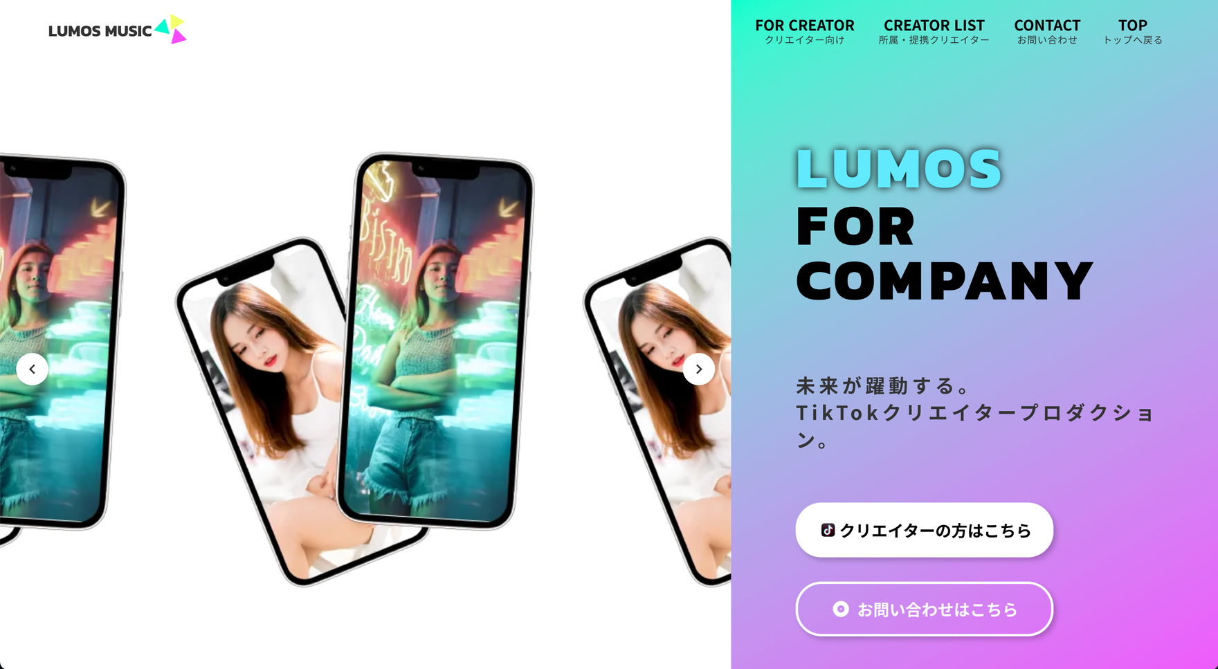 立ち上げから半年で、1,200名以上のTikTokerを独自で抱えるTikTokクリエイターMCN『LUMOS』(https://lumos.co.jp/)を運営。LUMOSクリエイターの総FW数は5,000万以上にのぼる。
