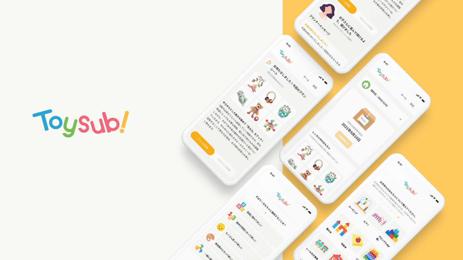 株式会社トラーナ様が運営するおもちゃのサブスクリプションサービス「ToySub!」のマイページ立ち上げプロジェクトに参加し、サービス設計、UI/UXデザインを担当しました。