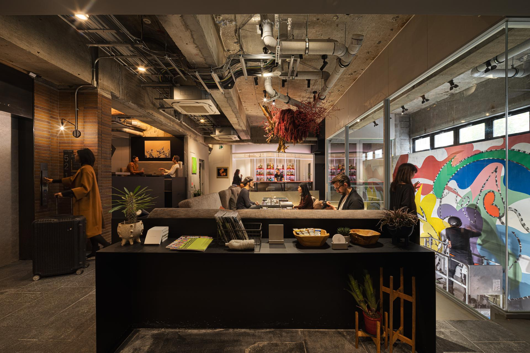2021年に東京日本橋でオープン。ホテルだけではなく、制作/展示スペース、巨大壁画、カフェ/バー/ラウンジを併設し、「Play」「Work」「Life」「Creation」と幅広い活動を目的としたオルタナティブホテルです。