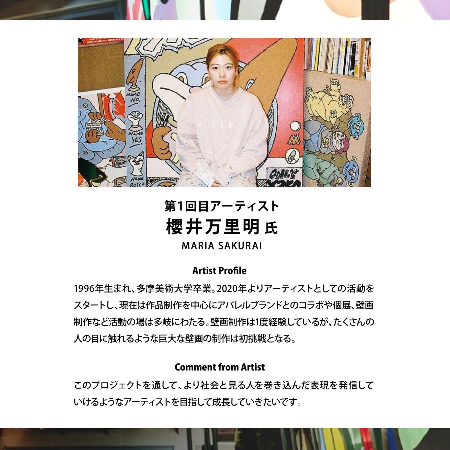 第一回のアーティストは櫻井万里明さんに決定し、壁画の製作および個展を開催しました。