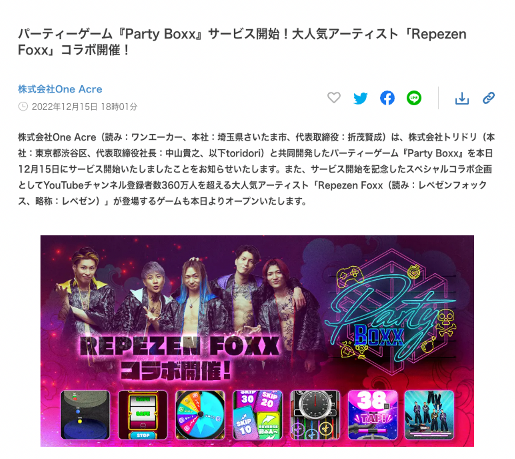 パーティーゲーム『Party Boxx』サービス開始!大人気アーティスト「Repezen Foxx」コラボ開催!