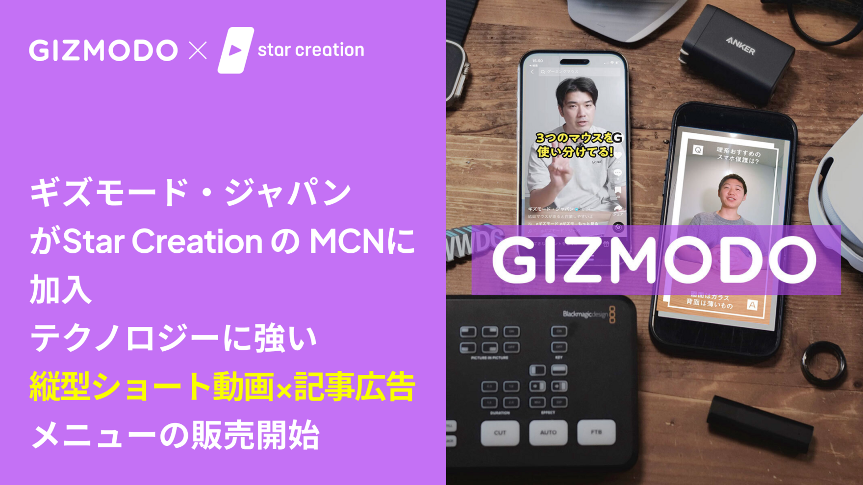 日本最大級のガジェットメディア「ギズモード・ジャパン」が、Star CreationのMCNに加入、テクノロジーに強い縦型ショート動画×記事広告メニューの販売を開始