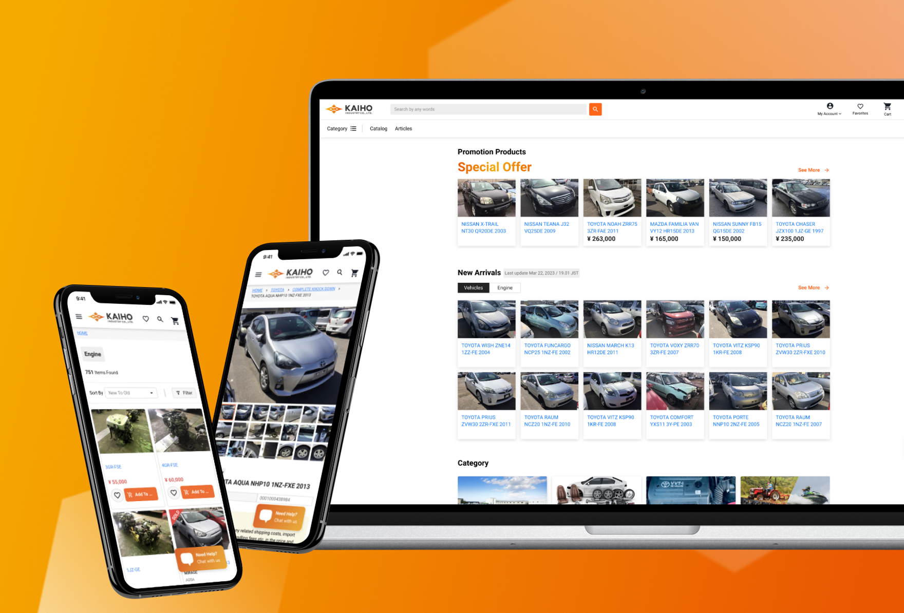 会宝産業株式会社様からアイスリーデザインにご依頼いただいたのは、「グローバルECサイト」の要件定義からシステム開発、運用。「グローバルECサイト」は自動車リサイクルを通して地球規模の循環型社会を目指す会宝産業株式会社様が自動車の中古部品を世界中に販売するサービスです。今回のプロジェクトは、単純に「既存業務をシステム化するECサイト」を作るのではなく、業務自体を変えてシステムも同時に変更する「本当の意味でのDX」。弊社はパートナーとして要件定義からシステム開発、運用まで一貫して実施させて頂きました。