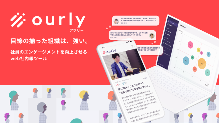 ourly(アワリー)は、組織の目線を合わせて従業員エンゲージメントを高めていくための社内コミュニケーションSaaSです。