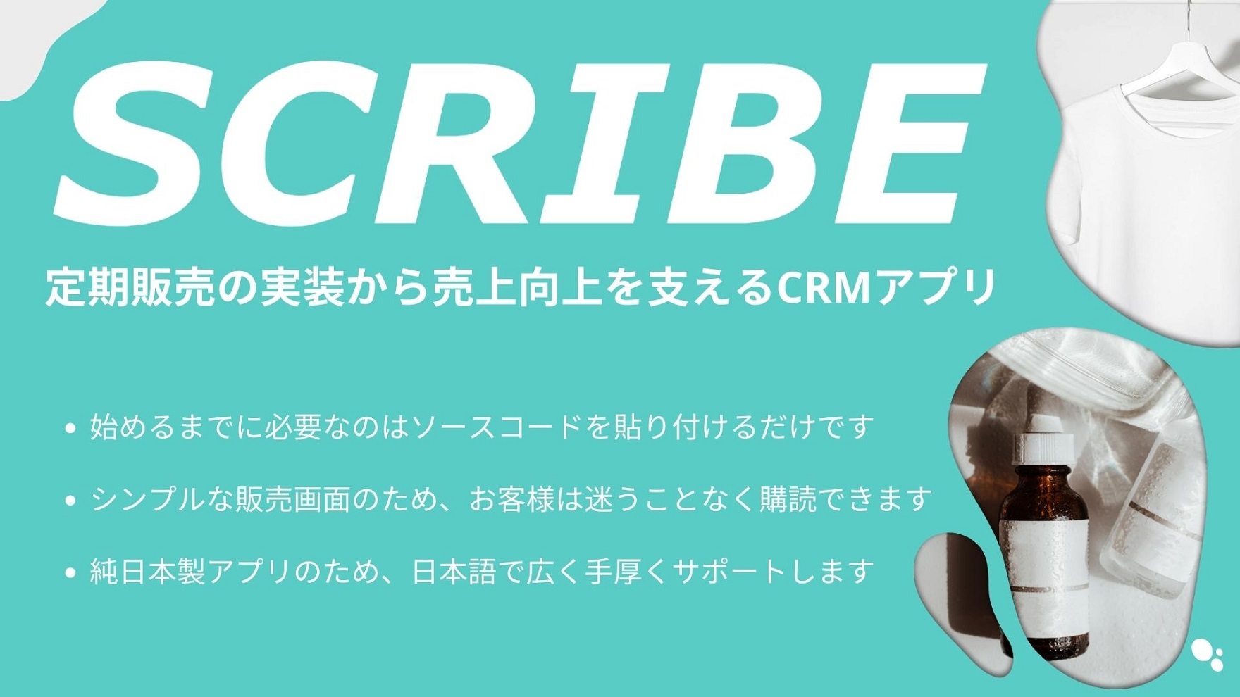 弊社が提供するプロダクトの一つである、サブスクに特化した販売機能の実装・CRM機能を完備したShopifyアプリです。SCRIBEではShopifyサイトへのサブスク販売実装が簡単にできます。また、消費者・商品毎に契約状況を管理、販促プランの設計、CRM機能をご利用いただけます。ShopifyというグローバルなECプラットフォームを通し、今後も国内外問わずサービスを展開していきます。