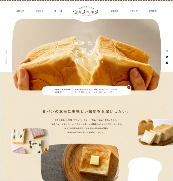 滋賀県石山寺の門前で保存料・着色料・香料・乳化剤不使用のひとつひとつこだわった食材のみを使用して店内工房で手作りしている食パン専門店「ツキノベーカリー」のホームページを制作しました。